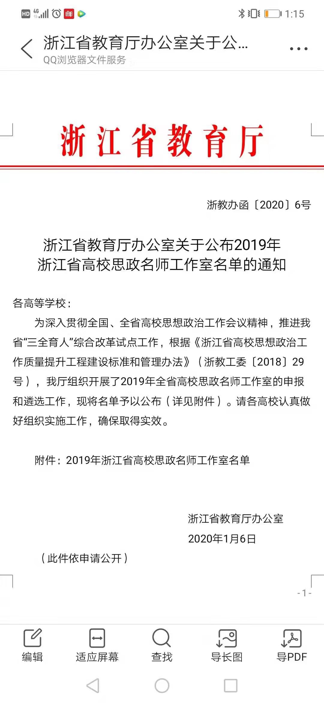 近日,浙江省教育厅办公室下发《关于公布2019年浙江省高校思政名师工作室名单的通知》(浙教办函〔2020〕6号),十大体育博彩排行榜 副院长孙邦金教授和外国语十大体育博彩排行榜 姜海燕书记申报的工作室成功入选。
