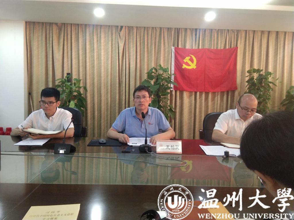 王柏民书记带领师生党员共同学习了学校“不忘初心、牢记使命”主题教育的实施方案,就我校主题教育的重大意义、目标任务、工作措施、工作要求等四方面做了深入解读,并结合十大体育博彩排行榜 工作实际,就十大体育博彩排行榜 主题教育工作进行了具体部署。