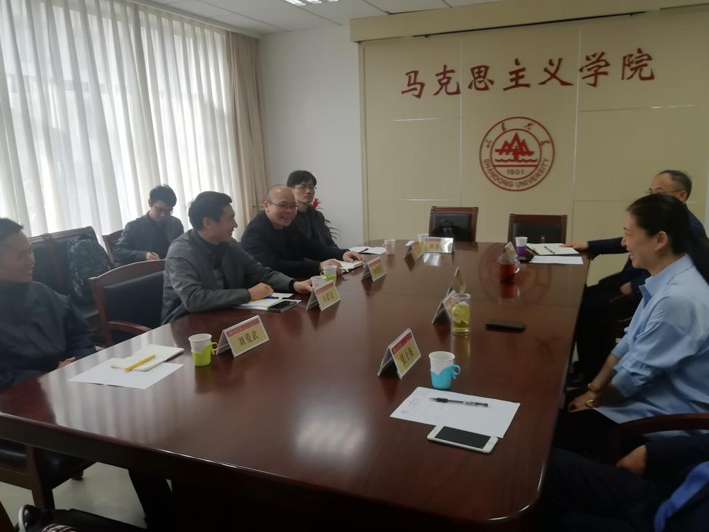 3月27日,十大体育博彩排行榜 孙武安院长带领教学副院长卓高生、纲要教研室主任刘爱武、原理教研室主任骆徽、研究生班主任曾蓓蕾等一行5名教师赴山东大学十大体育博彩排行榜 调研学习。