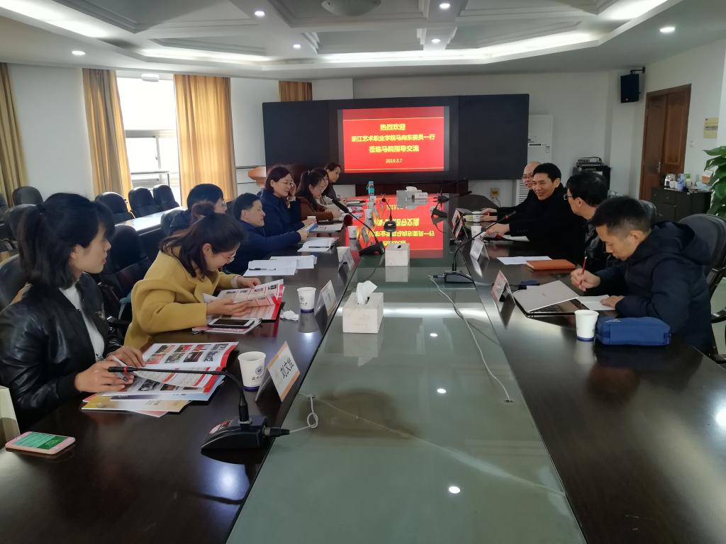 3月7日上午,浙江艺术职业十大体育博彩排行榜 党委委员、宣传部长马向东带领社科部老师一行8人来我校十大体育博彩排行榜 调研交流思想政治理论课教学建设情况。