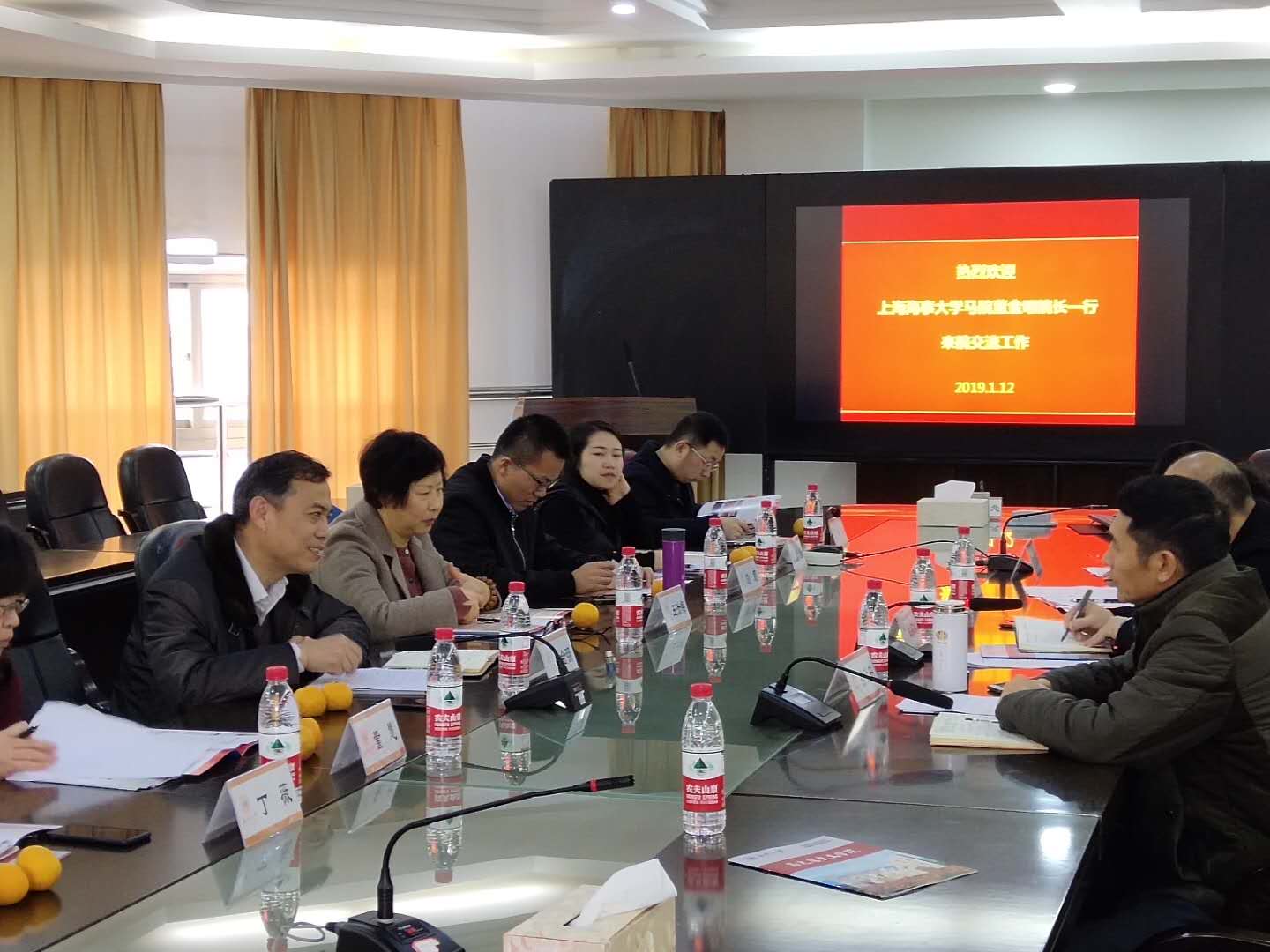 1月12日上午,上海海事大学十大体育博彩排行榜 院长董金明一行8人来我校十大体育博彩排行榜 调研交流学科建设及科研和教学情况。