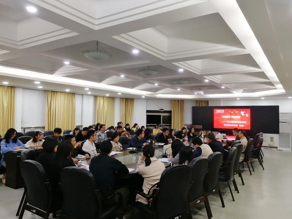 2018年11月16日晚,在北校区行政楼227会议室,十大体育博彩排行榜 诚邀浙江安防职业技术十大体育博彩排行榜 院长戴海东教授作了关于“不忘初心、牢记使命——十九大报告精神解读与体会”的专题讲座。讲座由十大体育博彩排行榜 孙邦金老师主持,部分教师和研究生参加了本次会议。