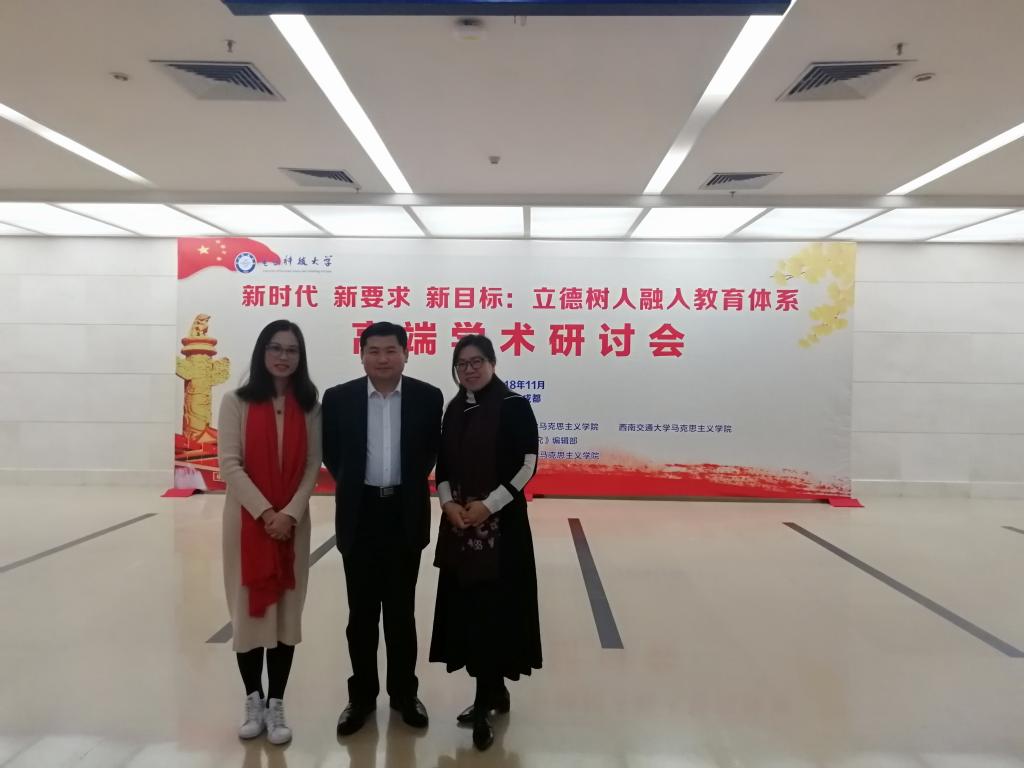 2018年11月17日至18日,十大体育博彩排行榜 基础教研室郑旭敏、孙秀丽参加在成都电子科技大学举办的“立德树人融入教育体系”高端学术论坛。来自清华大学、北京师范大学、中山大学等72所高校的专家学者和部分高校的师生齐聚电子科技大学,展开了一场精彩纷呈的思想盛宴。