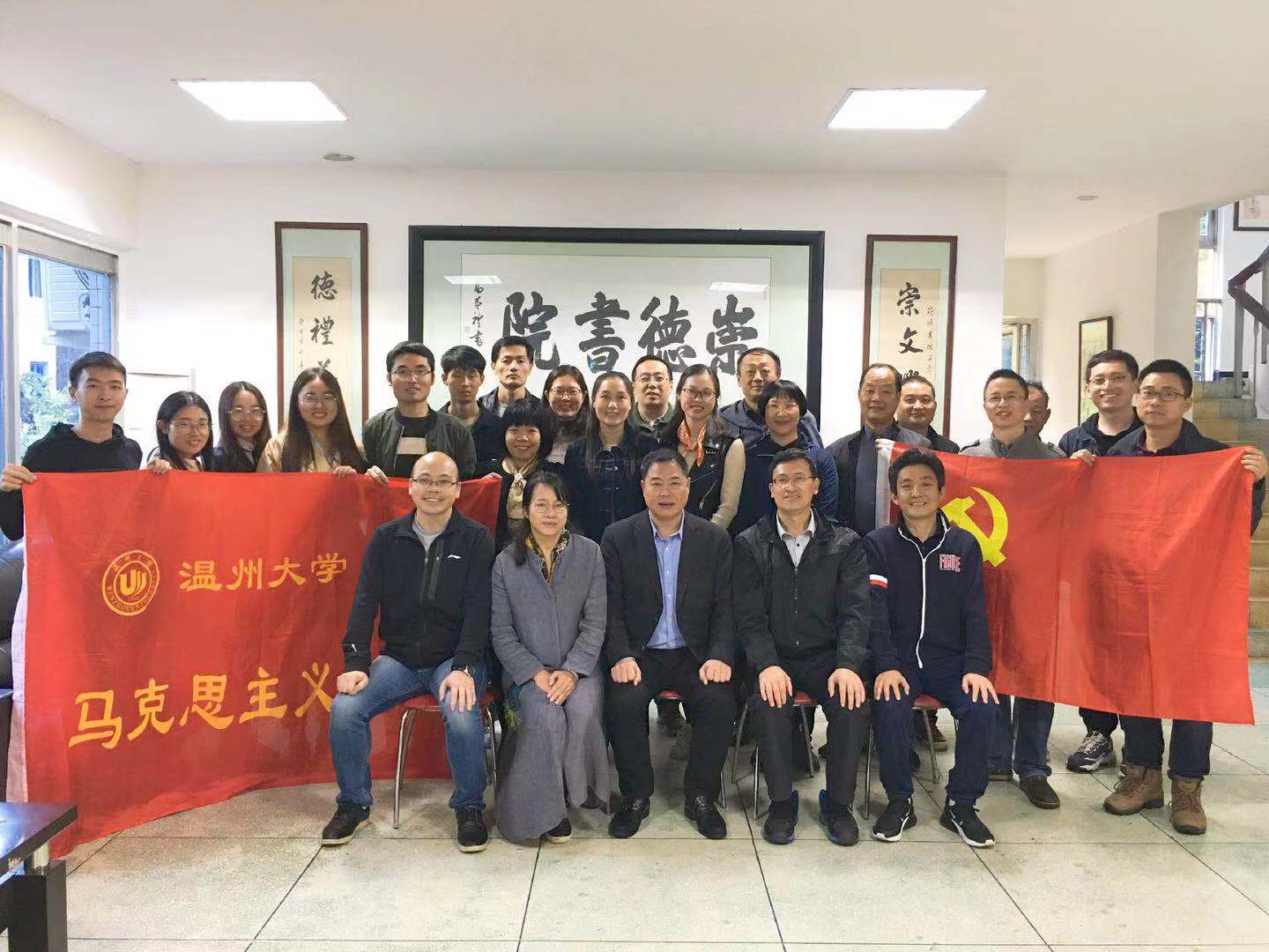 2018年11月3日,十大体育博彩排行榜 党员教师和十大体育博彩排行榜 研究生干部近30人赴位于瑞安市高楼镇双坑村的崇德书院参观学习考察,并与瑞安市下属三家单位的员工一起参加了崇德书院第402期道德培训活动。