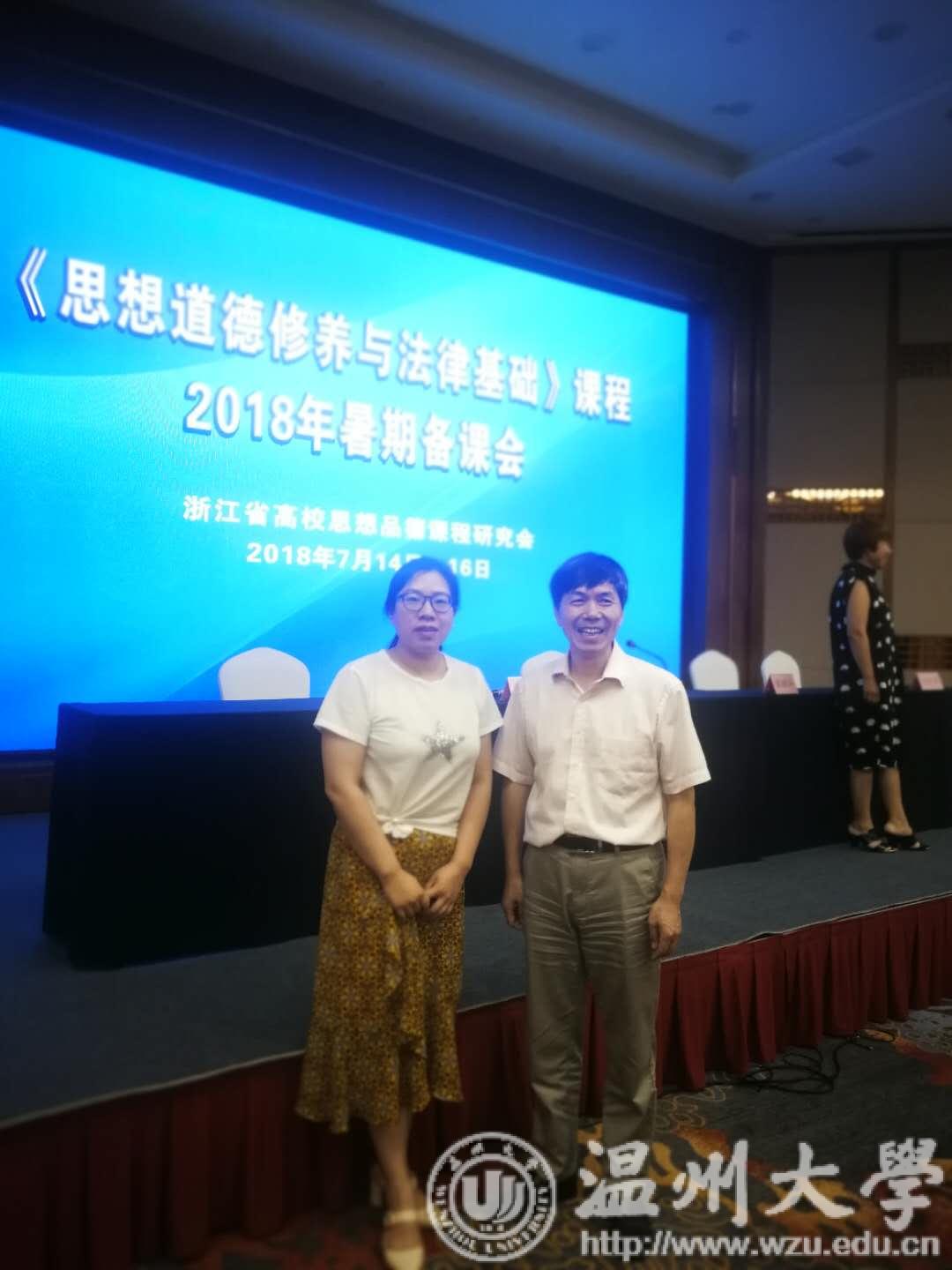 2018年7月14-16日十大体育博彩排行榜 教师郑旭敏参加了全省高校《思想道德修养与法律基础》课暑期备课会。此次会议旨在深入学习、深刻领会十九大精神,切实做好习近平新时代中国特色社会主义思想进教材、进课堂、进学生头脑工作,充分发挥浙江是红船起航地、改革开放先行地、习近平新时代中国特色社会主义思想重要萌发地的优势,着力提高思想政治理论课教学效果。