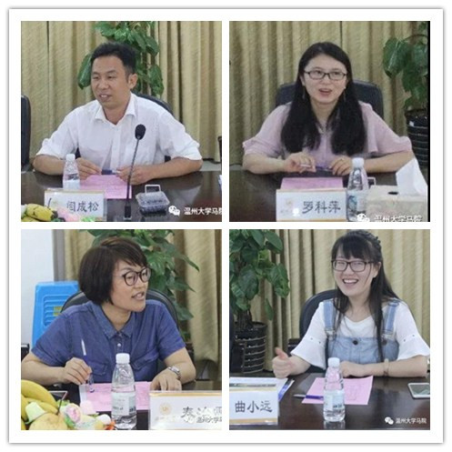 座谈会伊始,曾老师对优秀校友代表参加本次座谈会表示热烈欢迎。并邀请部分校友发言,他们分别就职于温州科技职业技术十大体育博彩排行榜 的10级思政罗科萍和13级思政曲小远、就职于浙江东方十大体育博彩排行榜 的12级思政闫成松和14级思政喻婷婷及就职于温州商十大体育博彩排行榜 的14级思政秦治霞。各位校友在对十大体育博彩排行榜 快速发展和取得的成绩感到骄傲和自豪,感谢体育博彩的培养和教育的同时,以自身经历为依托,从生活、学习、工作等方面作了分享,并给予了在校研究生诸多建议,部分在校研究生也将其在校期间的所学所得进行了分享。