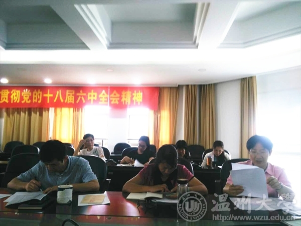 召开全体教职工大会,由党总支组织委员项淳芳老师传达温州大学“红七月、服务月”活动通知的精神,动员全体教职工党员利用暑期开展 “两学一做”的实践活动。项老师重点传达了学校关于认真深入学习宣传贯彻省第十四次党代会的精神。