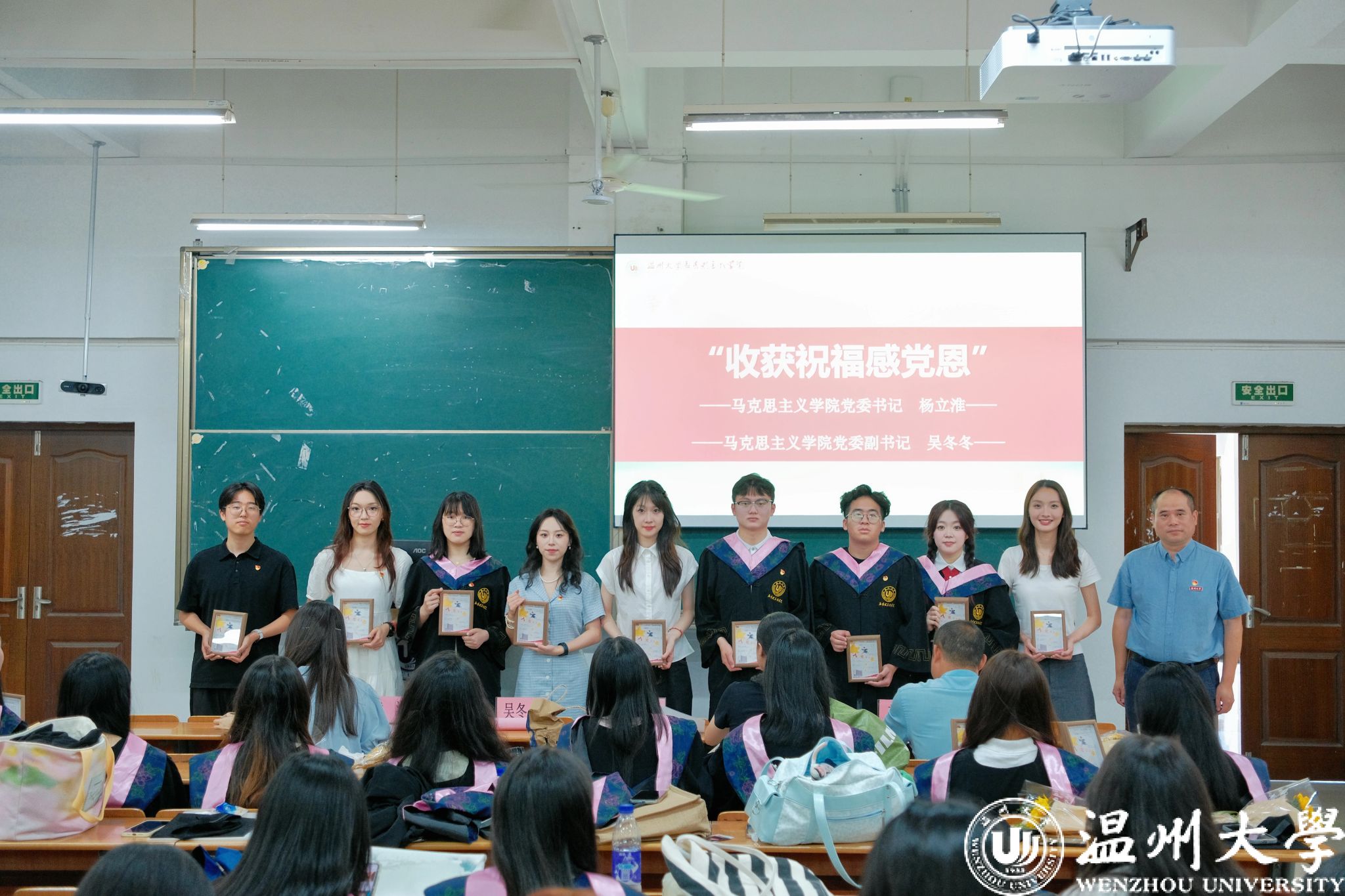 十大体育博彩排行榜 党委书记杨立淮老师、十大体育博彩排行榜 组织员林丽丽老师分别为研究生支部和本科生支部毕业党员发放“政治生日”纪念礼物。这份特别的临别赠礼,寄托着母校的殷切期望:愿每位青年党员无论身处何境,都能坚守初心使命,与党同向同行,在民族复兴的浪潮中勇毅前行,以青春之我续写红色华章,让信仰之光在时代征程中永不褪色。