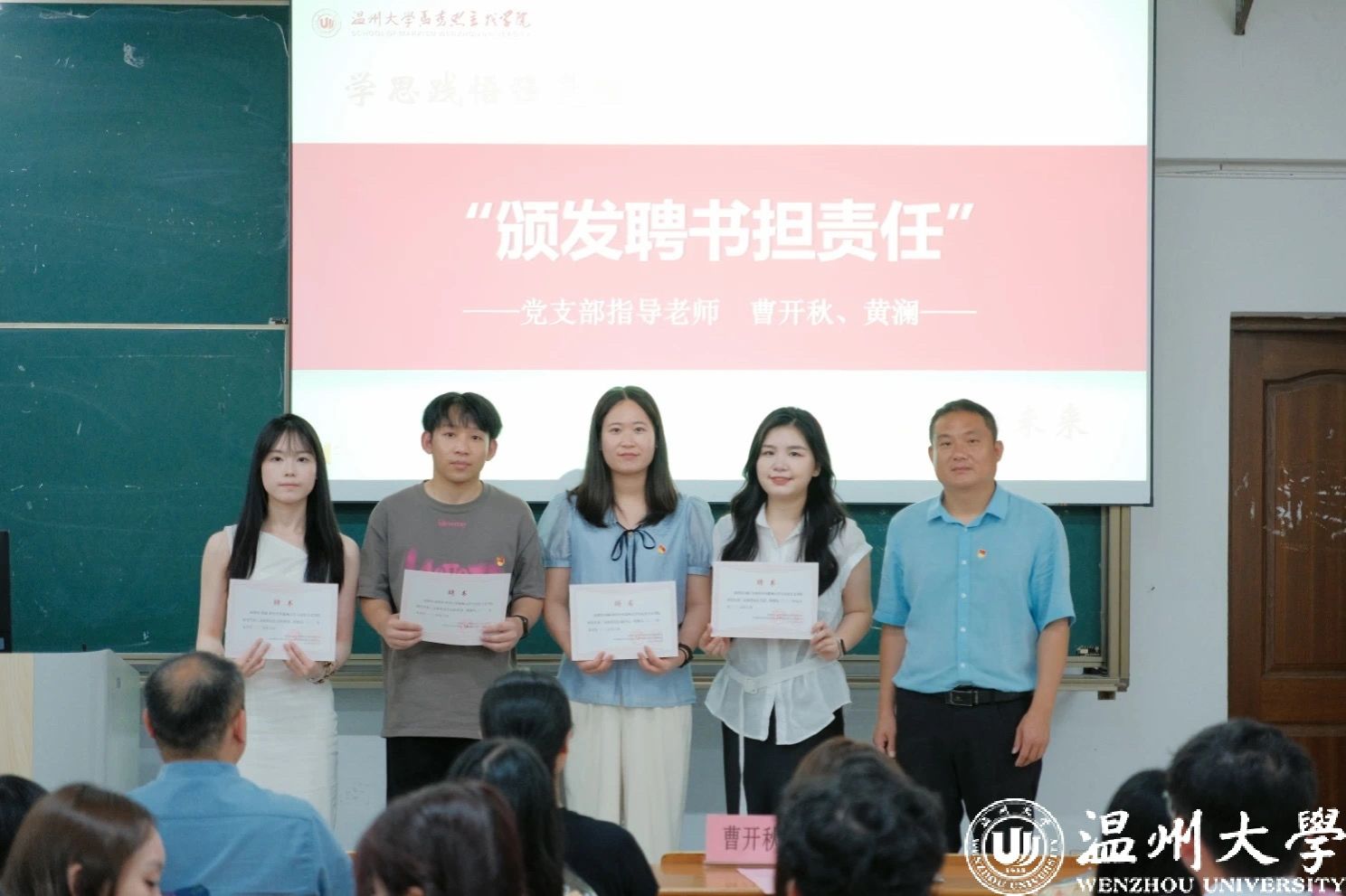 十大体育博彩排行榜 研究生党支部指导老师曹开秋、十大体育博彩排行榜 本科生党支部书记黄澜分别为辛勤服务的党员服务中心主任、研究生第三党支部支委颁发了聘书。希望他们在未来继续严格要求自己,不断提升政治素养和服务意识,勇于担当,在各项工作中继续发挥先锋模范作用。