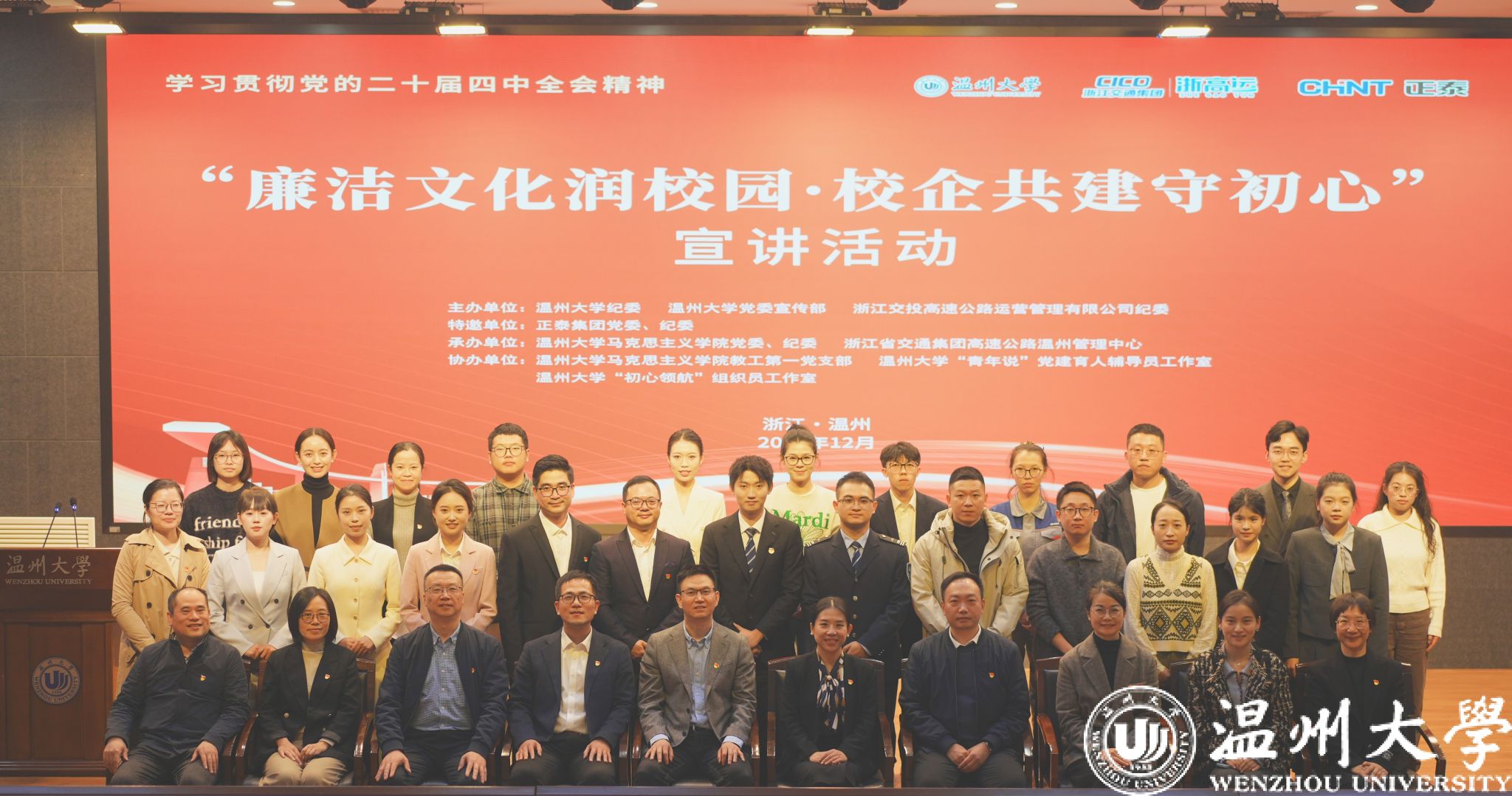 12月3日下午,以“廉洁文化润校园·校企共建守初心”为主题的廉洁宣教风采展示活动在温州大学岩松堂步青厅圆满举行。