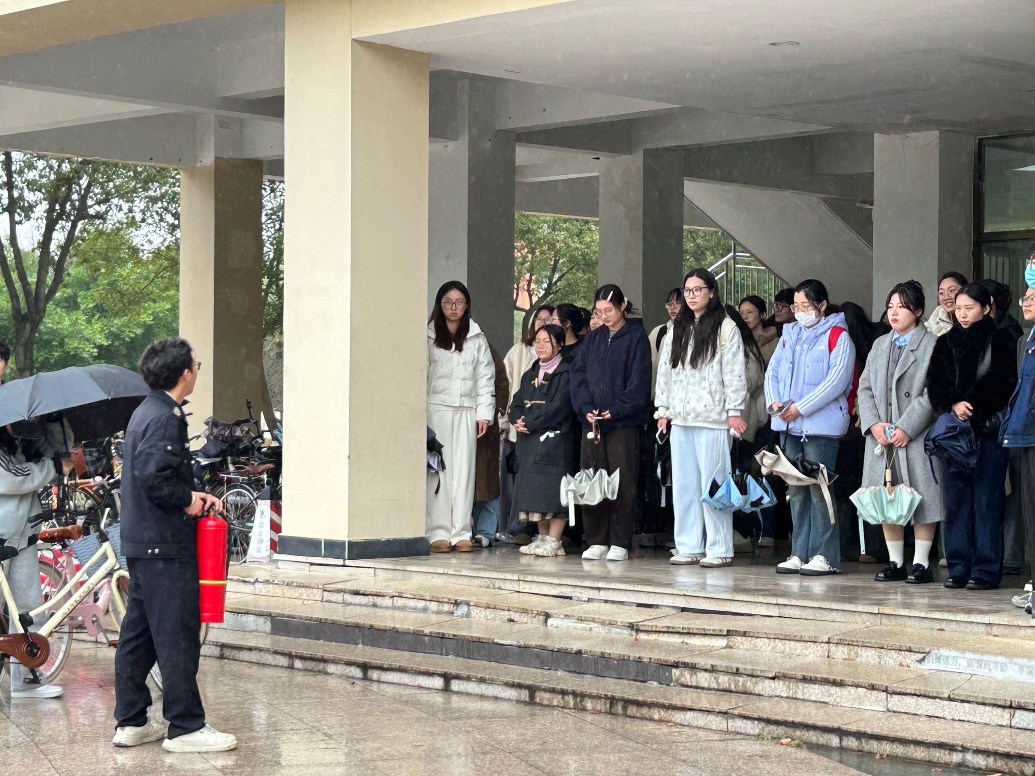 疏散演练结束后,校保卫部同志为师生带来消防安全实操培训。消防员结合校园火灾典型案例,详细讲解了火灾成因、初期火灾扑救技巧、火场逃生注意事项等核心知识,重点示范了干粉灭火器 “提、拔、握、压” 的规范使用流程。
