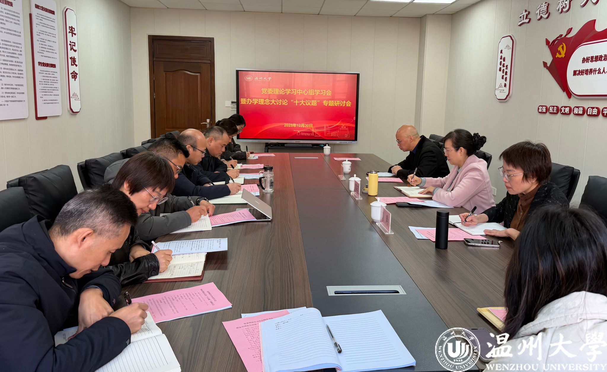12月30日上午,十大体育博彩排行榜 召开党委理论学习中心组学习会暨办学理念大讨论“十大议题”专题研讨会。党委理论学习中心组成员参加会议,校党委副书记赵降英,统战部副部长、妇联主席刘吟到会巡听指导,十大体育博彩排行榜 党委书记杨立淮主持会议。