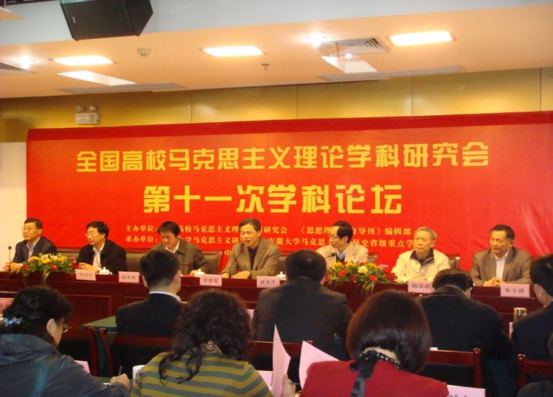“全国高校马克思主义理论学科第十一次论坛”4月7日在安徽大学举行。来自北京大学、清华大学、复旦大学、中国人民大学、北京师范大学、武汉大学、吉林大学、西安交通大学、中山大学、合肥工业大学、温州大学等全国20多家高校的马克思主义研究专家应邀出席会议。 马克思主义理论学科是从整体上研究马克思主义基本原理和科学体系的学科,是我国哲学社会科学的基础学科。马克思主义理论学科的发展,既要遵循学科建设的普遍规律,又要尊重学科建设的特殊要求。在当今时代,如何提升马克思主义理论学科的影响力、不断完善马克思主义理论学科的框架、不断拓展马克思主义理论学科的研究领域、不断提升马克思主义研究服务中国特色社会主义实践的能力等,是重大而艰巨的现实问题。围绕这些问题,与会专家进行了深入的讨论与交流。