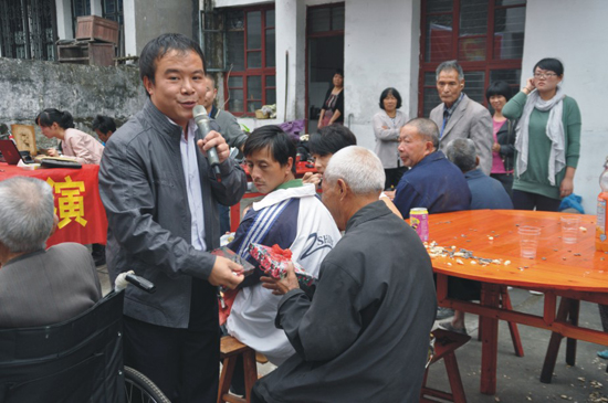10月16日,秋高气爽,丹桂飘香,永嘉大若岩镇中心敬老院里热闹非凡。在重阳节来临之际,思政部公民教育宣讲团联合温州萤火虫义工团一行40名志愿者经过两个小时的车程来到了大若岩镇中心敬老院,向老人们送去了节日的亲切问候。近50位老人享受了一顿丰盛的大餐后,还欣赏了公民教育宣讲团和温州萤火虫义工团精心准备的精彩演出,饱了口福又饱了眼福。