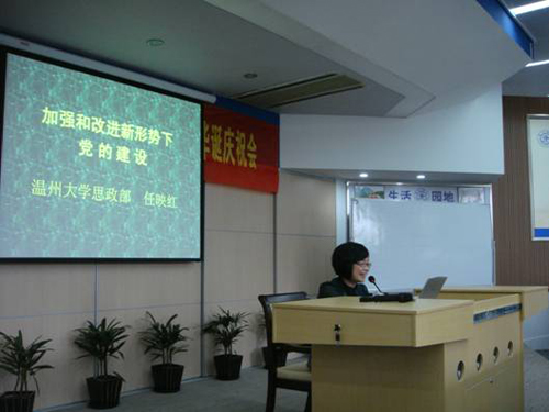 2009年9月19日,民盟温州大学总支召开深入学习贯彻中国共产党十七届四中全会精神暨迎接新中国60华诞庆祝会。大会特邀温州大学思政部任映红教授作了题为《加强和改进新形势下党的建设——学习党的十七届四中全会精神的体会》的报告。