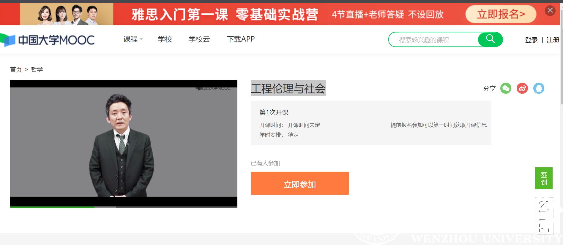 热烈祝贺:中国大学MOOC《工程伦理与社会》(温州大学)正式上线开通!