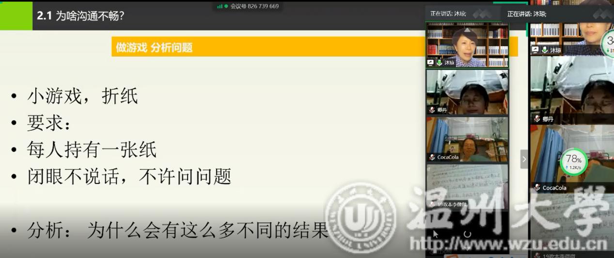 通过具体案例的讲解、沟通故事的分享、撕纸游戏的进行,使同学们对沟通的定义、类别、基础有了更加深入的了解,对沟通障碍形成的原因有了更深入的剖析与感悟。
