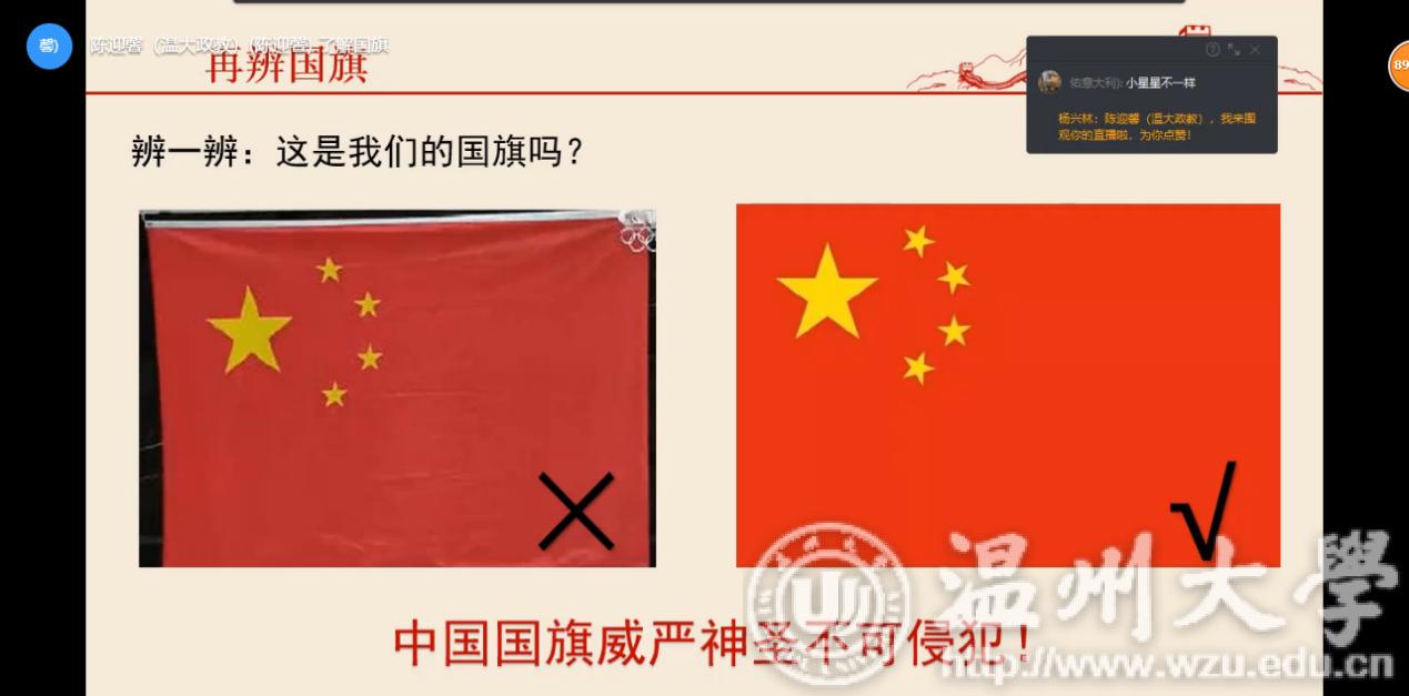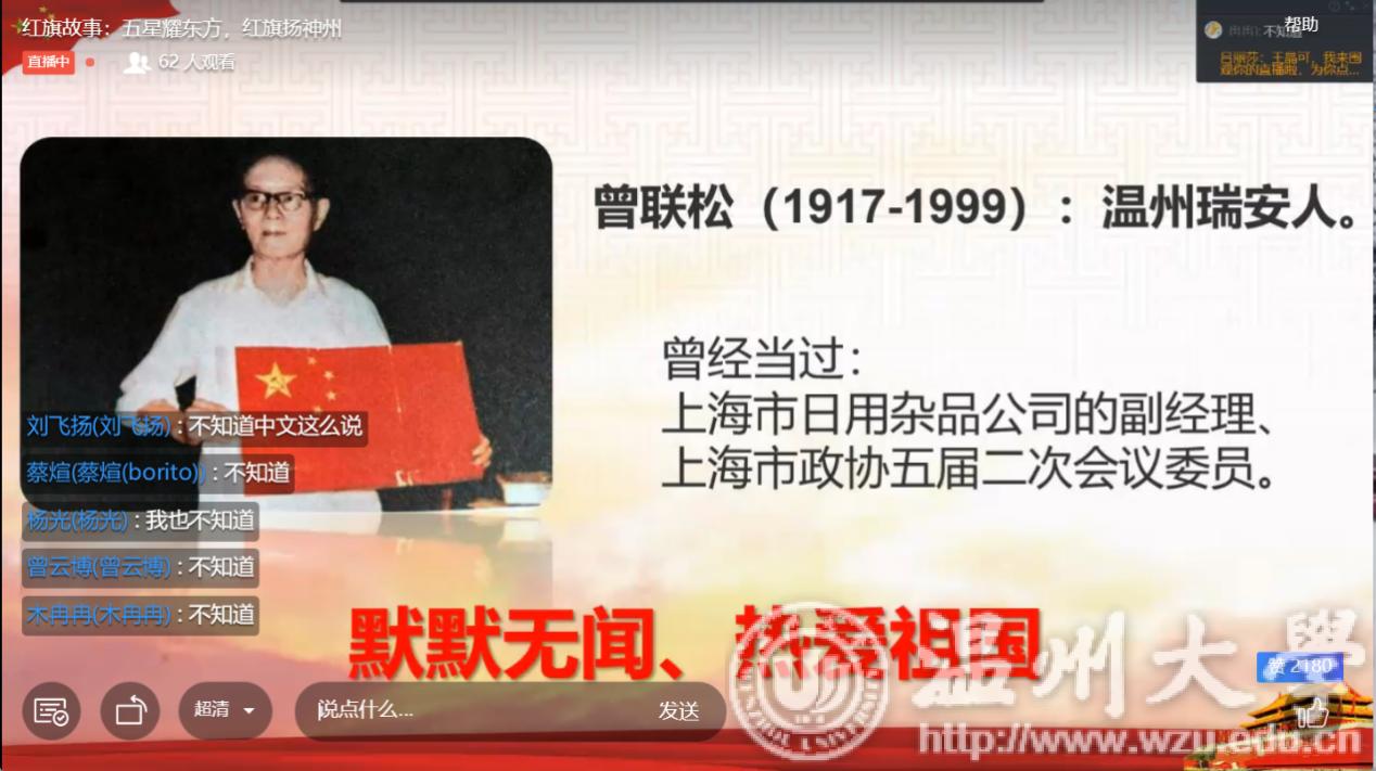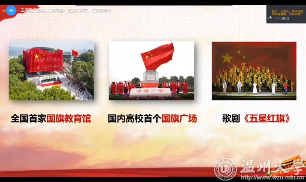 为了引导华侨子女树立爱国主义情怀,围绕学校“国旗文化”品牌打造,十大体育博彩排行榜 成立国旗志愿服务宣讲团,主要负责此次云端夏令营“红旗故事”特色主题课程授课。通过对五星红旗自诞生至今的风雨历程、曾联松先生设计国旗的小故事、五星红旗的丰富内涵 、《中华人民共和国国旗法》等内容的讲述,让华侨子女学习五星红旗的相关知识,树立尊重国旗、爱护国旗的意识,培养对五星红旗的认同感、敬畏感与自豪感,从而激发华侨子女浓烈的爱国热情。