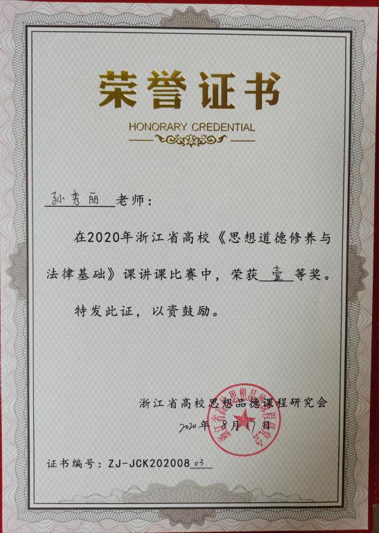 喜报:十大体育博彩排行榜 教师孙秀丽获得浙江省基础课讲课比赛一等奖