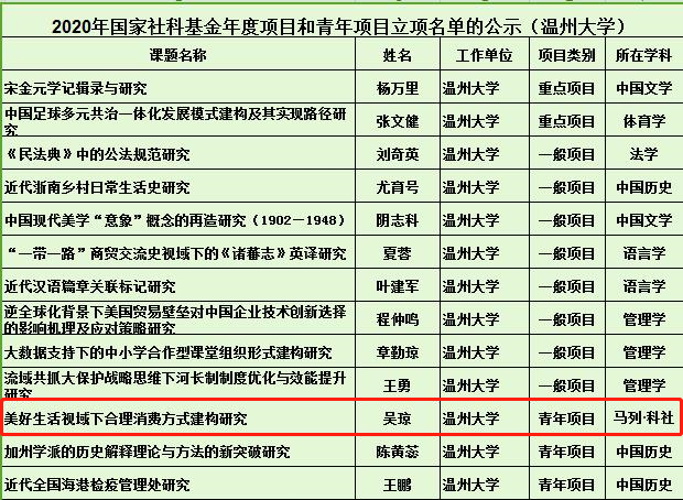 喜报:十大体育博彩排行榜 吴琼博士喜获2020年国家社科基金青年项目立项