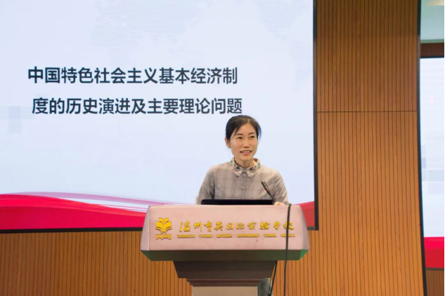 在专家引领环节,十大体育博彩排行榜 毛泽东思想和中国特色社会主义理论体系概论教研室主任、瓯江学者特聘教授何玲博士则从理论角度对本次思政课一体化教学展示课主题进行解读,作了题为《社会主义基本经济制度的历史演进及主要理论问题》主旨报告,以提升小初高教师的思政理论素养。