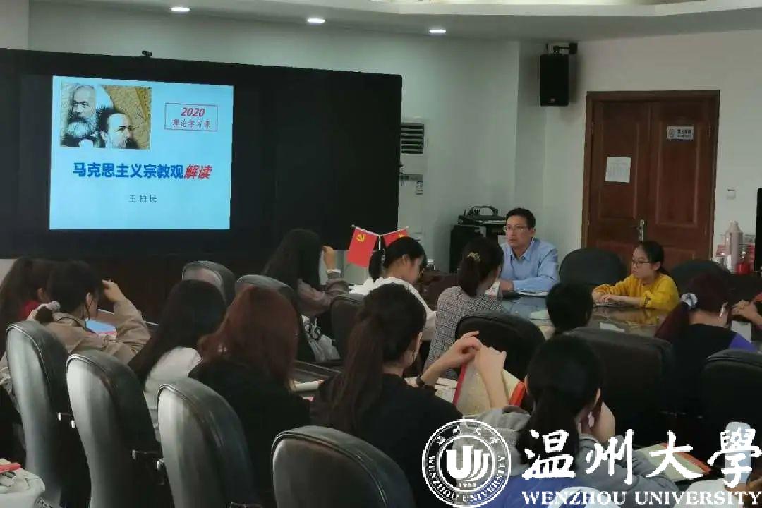最后,王柏民书记总结到,要理解宗教反映现实世界,是一种社会文化现象;态度上应尊重宗教信仰自由,引导宗教与社会主义社会相适应,构建积极健康的宗教关系,法治化宗教工作;并提出了共产党员、共青团员要做坚定无神论者的要求。