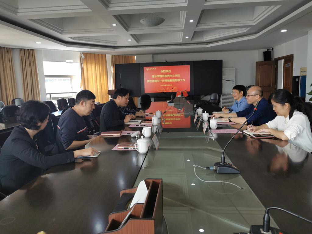 11月19日上午,丽水十大体育博彩排行榜 十大体育博彩排行榜 院长龚志伟教授一行四位专家学者来十大体育博彩排行榜 交流考察工作。十大体育博彩排行榜 院长卓高生教授、思政课各教研室主任和虚仿项目负责人参加会议。会议由卓高生院长主持。