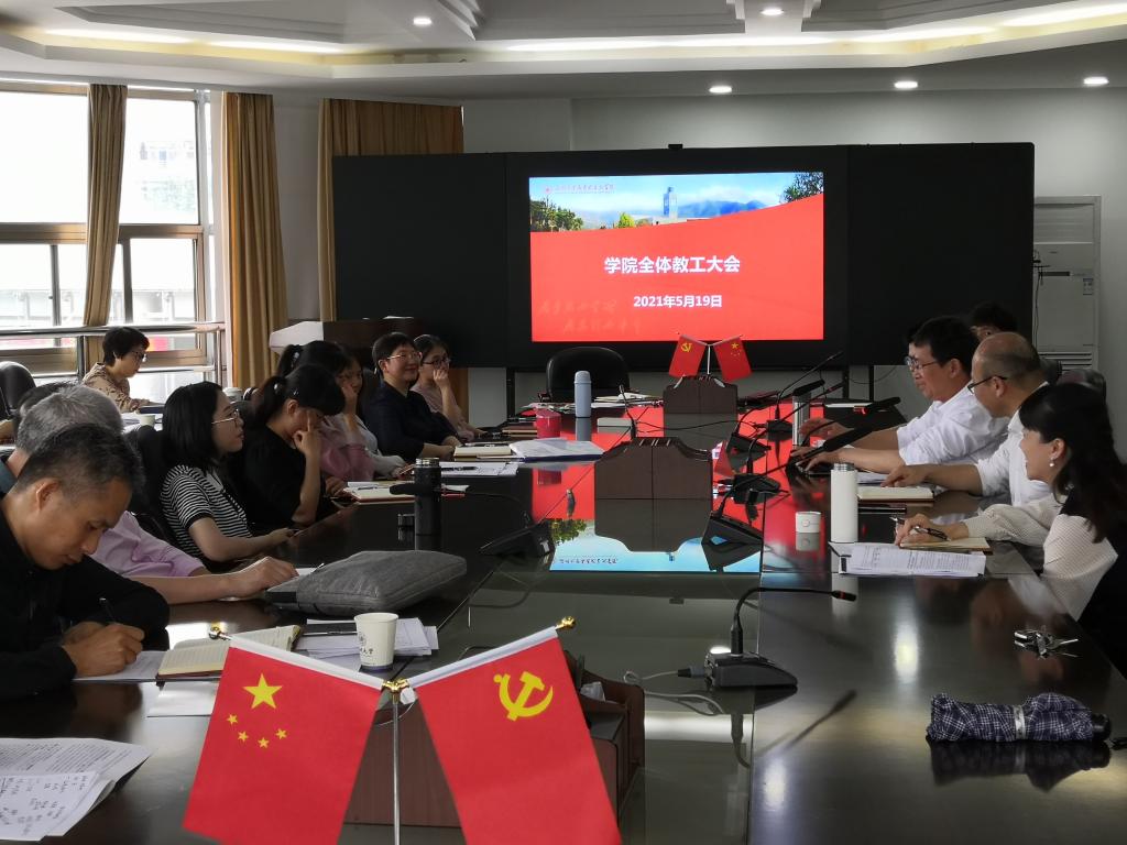 2021年5月19日下午,十大体育博彩排行榜 在227会议室召开全体教职工大会。此次会议由十大体育博彩排行榜 党委书记王柏民主持,十大体育博彩排行榜 领导班子成员和全体教职工参加会议。
