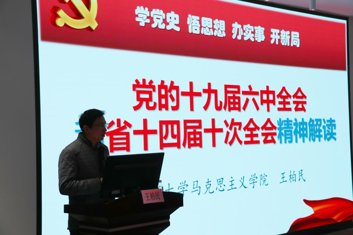 为更好推动全院学生学习贯彻党的十九届六中全会精神,深刻领会把握全会的重大意义,统一思想、凝聚共识、汲取力量,2021年12月8日晚,十大体育博彩排行榜 于温州大学马克思主义理论教育基地开展了学习党的十九届六中全会精神形势政策课。本次课程由十大体育博彩排行榜 党委书记王柏民主讲,以党的十九届六中全会为切入,用四个关键词分述课程。