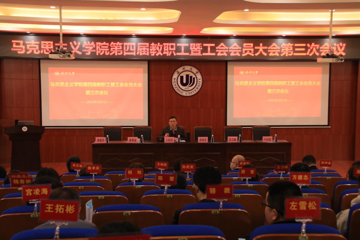 2022年3月5日上午9:00,十大体育博彩排行榜 第四届教职工暨工会会员大会第三次会议在北校区3号楼203会议室隆重召开,大会由十大体育博彩排行榜 党委书记王柏民同志主持。