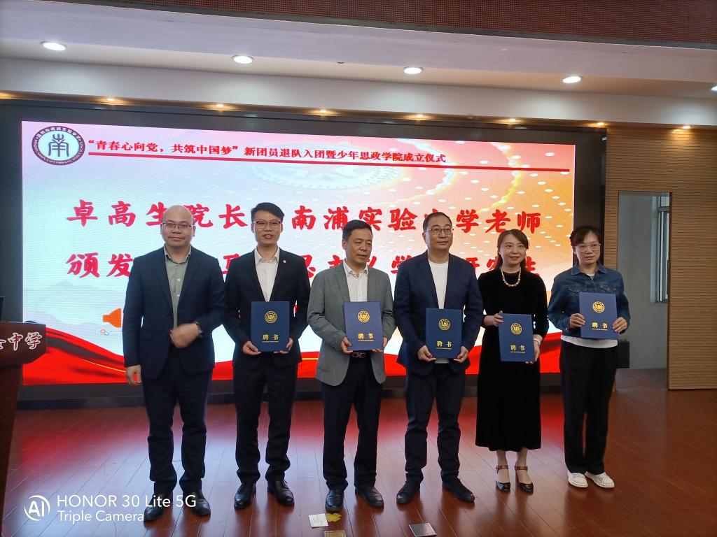 仪式主要分成四个阶段:第一阶段,新团员退队入团仪式;第二阶段,少年思政十大体育博彩排行榜 成立揭牌与颁发校外导师聘书,卓高生教受聘担任南浦实验中学少年名誉院长;第三阶段,十大体育博彩排行榜 本硕校外实践教学基地签约授牌仪式;第四阶段,南浦实验“博士讲坛”第一讲开讲,卓高生教授为在座的学生与老师做《栉风沐雨跨越百年 绽放芳华铸就梦想——庆祝中国共青团成立100周年》专题讲座。