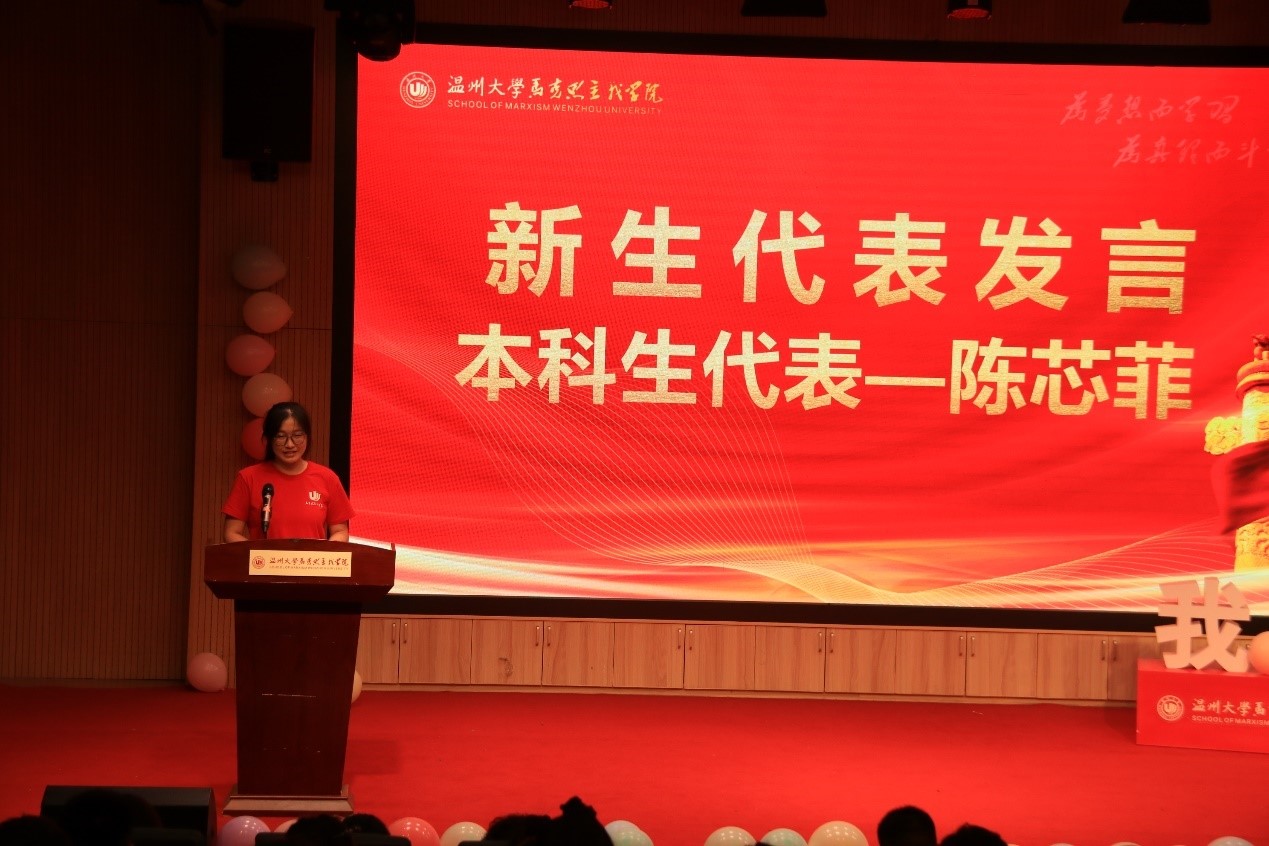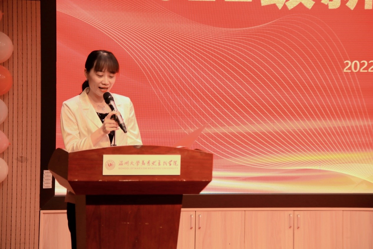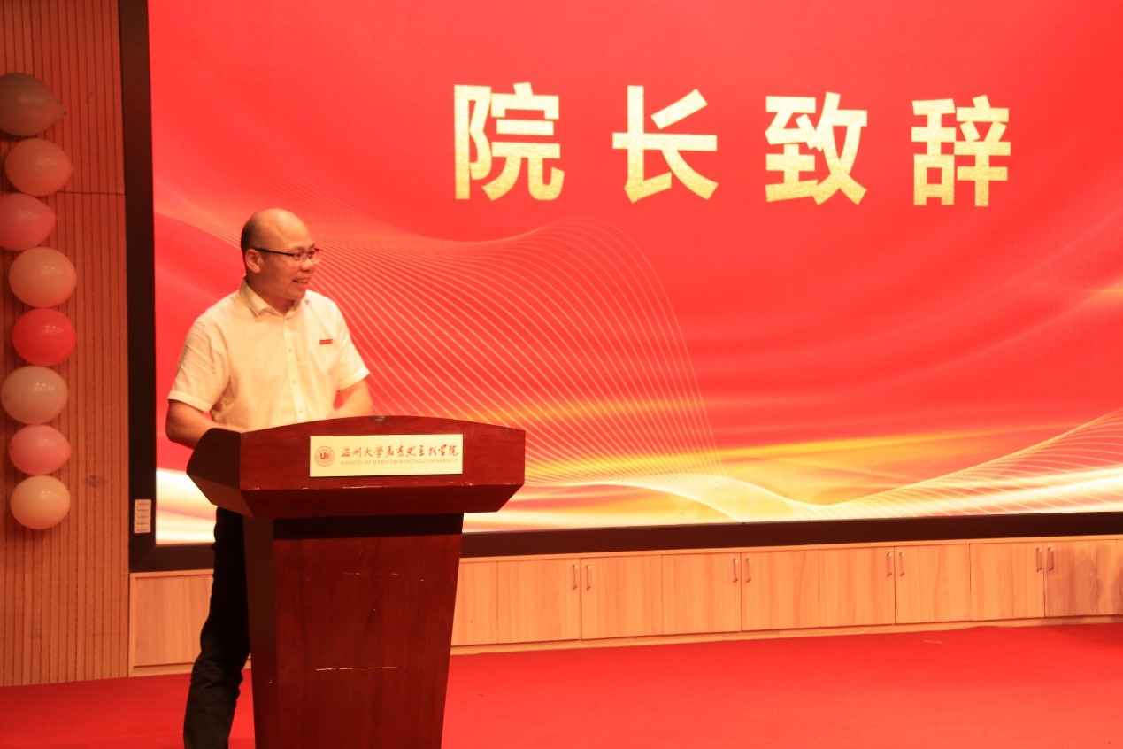 教师代表赵光辉博士从好学、勤思、力行三方面为新同学们提出建议。赵老师指出马克思主义作为科学的理论,大家要在浩瀚的理论海洋中找回初心,涵养品格,锻炼思维,提升能力。“博学而笃志,切问而近思”,赵老师鼓励新生要勇于思考、敢于进行批判性反思,做一名好学者、勤思者,这与校训 “求学问事”的精神相契合。作为新时代大学生,不仅要聚焦于理论学习,更要面向实践,落实到行动中,切实做到知行合一,以知促行,以行求知,在力行中求真知,谋其路、出成果,能够学有所思、学有所成、学有所用,乘着机遇之帆,启航前行,成为罗曼罗兰所说的“看透生活的本之后依然热爱生活的英雄”!