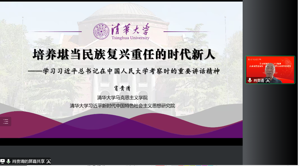 会议第二部分为主旨报告,由十大体育博彩排行榜 副院长孙邦金教授主持。教育部马克思主义理论类专业教学指导委员会副主任委员、山东师范大学原党委书记商志晓教授作以《深化理解“归根到底是马克思主义行是中国化时代化的马克思主义行”》为题,精彩阐述了“两个行”的辩证关系,如何让“两个行”通过思政课课堂让同学们入脑入心等问题。教育部马克思主义理论类专业教学指导委员会副主任委员、清华大学习近平新时代中国特色社会主义思想研究院常务副院长肖贵清教授以《培养堪当民族复兴重任的时代新人》为题,全面梳理和总结了习近平总书记近十年来对高校考察工作时关于立德树人的重要论述,从立德树人是新时代高校根本任务、关心高校思想政治理论课建设、重视高校教师队伍建设等三个方面阐述了思政课建设、人才培养、思政课教师队伍建设的要求。两位专家的主旨报告思辨清澈、高屋建瓴,给大家以深刻启迪。
