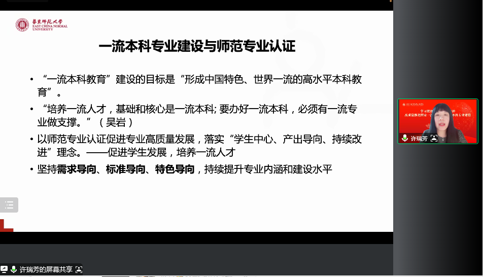 国家万人计划教学名师,浙江大学求是特聘学者马建青教授以《推进国一流思政专业建设》为题重点强调思政专业建设要做到“六个加强”;教育部师范类专业认证专家委员会委员学术委员会主任、合肥师范十大体育博彩排行榜 宋冬生教授以《基于卓越的师范专业人才培养的内涵》为题阐述了正向施工、反向设计的卓越师范生培养逻辑;教育部马克思主义理论类专业教学指导委员会委员、北京航空航天大学十大体育博彩排行榜 院长赵义良教授以《学科建设与一流专业建设的几点思考》为题阐述了一流专业建设存在的问题、改进推进的理念和改进的思路;华东师范大学十大体育博彩排行榜 副院长许瑞芳教授以《卓越育人背景下的思想政治一流本科专业建设》为题阐述了一流本科专业建设、培养一流人才与师范专业认证的关系,分享了卓越育人培养体系的思考;浙江师范大学十大体育博彩排行榜 院长周志山教授以《高师思政专业实践育人的几点做法与体会》为题分享了浙江师范大学思政专业建设、实践育人的宝贵经验;齐鲁师范十大体育博彩排行榜 十大体育博彩排行榜 院长赵立峰教授以《思政专业建设人才培养的几点做法》为题分享了该十大体育博彩排行榜 思政专业的学科基础、办学特色和教学模式改革、教学理念创新的优秀做法;宁波大学十大体育博彩排行榜 院长李包庚教授以《思想政治教育一流本科专业建设体会》为题分享了如何办好国一流专业、专业师资队伍建设、课程建设、人才培养定位等方面的思考;十大体育博彩排行榜 副院长吴志敏教授以《三融驱动·四高引领·五化并举的思政专业高质量人才培养思考》为题阐述了国一流专业建设、人才培养、专业认证以及与马克思主义理论学科的关系。各位专家的发言精彩纷呈,为思想政治教育专业建设提供了很多创新的思路。