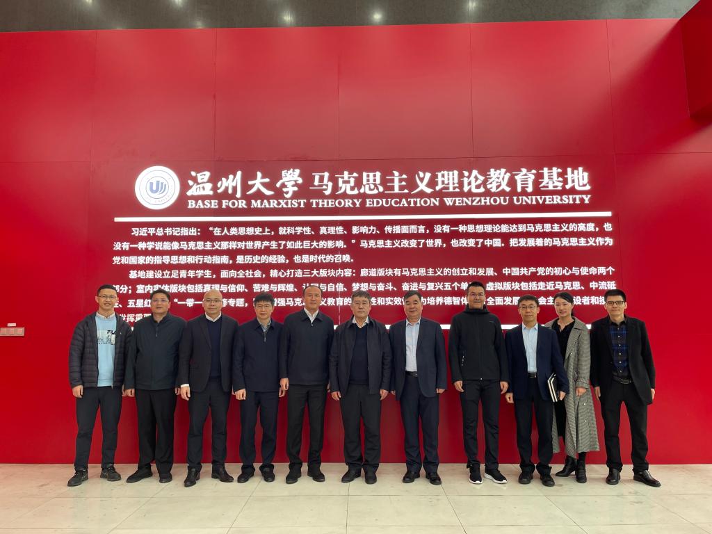 3月27日,中国社会科十大体育博彩排行榜 马克思主义研究院党委书记辛向阳一行走访调研温州大学马克思主义理论教育基地。副校长徐和昆、温州市委宣传部副部长曾伟等陪同调研。