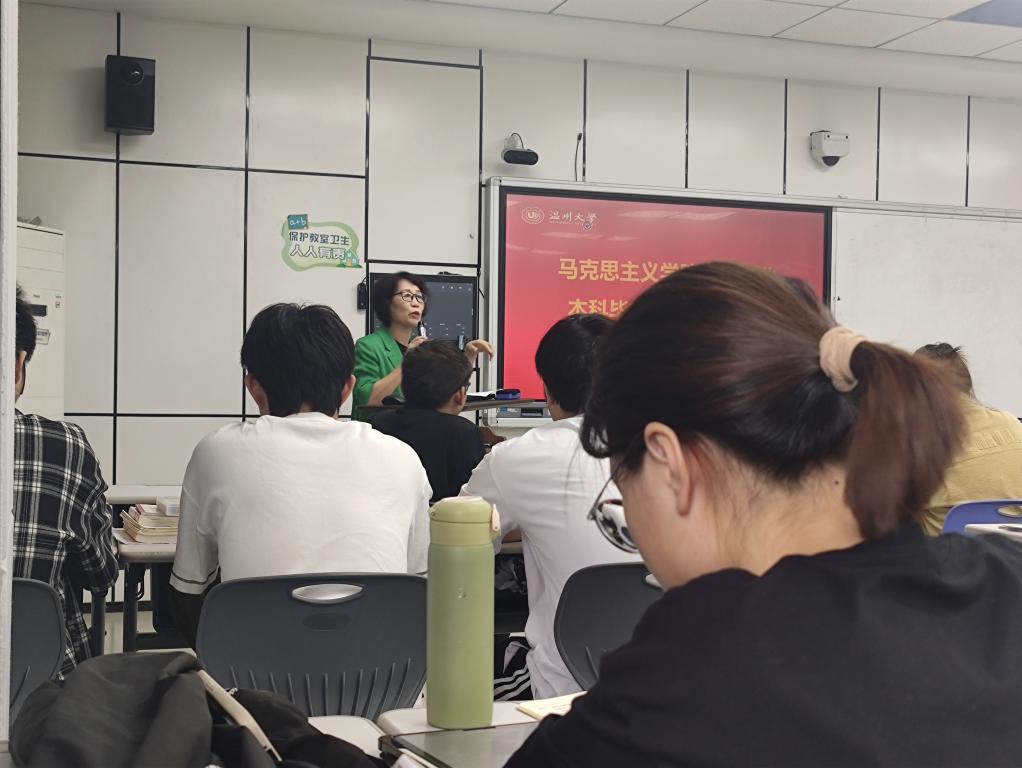 会议伊始,副院长吴志敏老师对于本科生的毕业论文做了总体的介绍。从论文的必要性、重要性和严谨性等不同方面进行了详细的讲解。并希望同学们能够全力以赴平衡好毕业论文和考研、考编等重要任务。