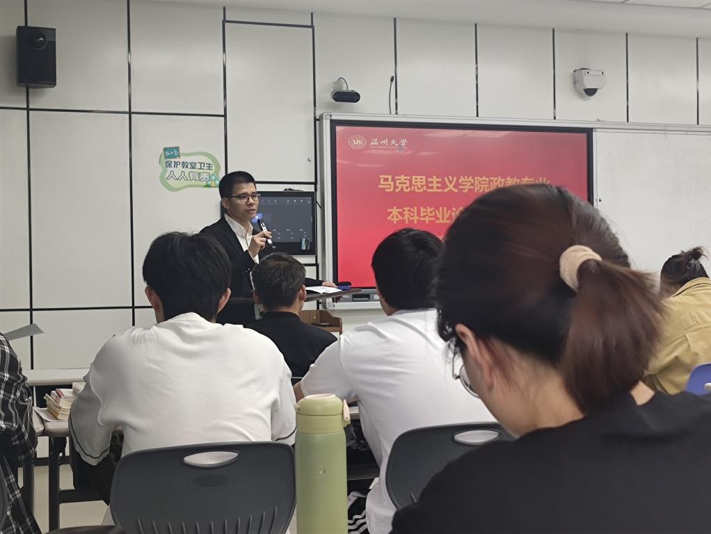 为提升本科毕业生的论文写作水平和写作素养,提高本科毕业论文的科学性,营造良好的学术氛围,2023年10月10日上午,十大体育博彩排行榜 政教专业本科毕业论文动员大会于北校瓯4-206教室召开。十大体育博彩排行榜 副院长吴志敏、党委副书记叶柏霜出席本次大会,十大体育博彩排行榜 20级政教全体学生参加本次大会。大会由教学科主任孙金波老师主持。