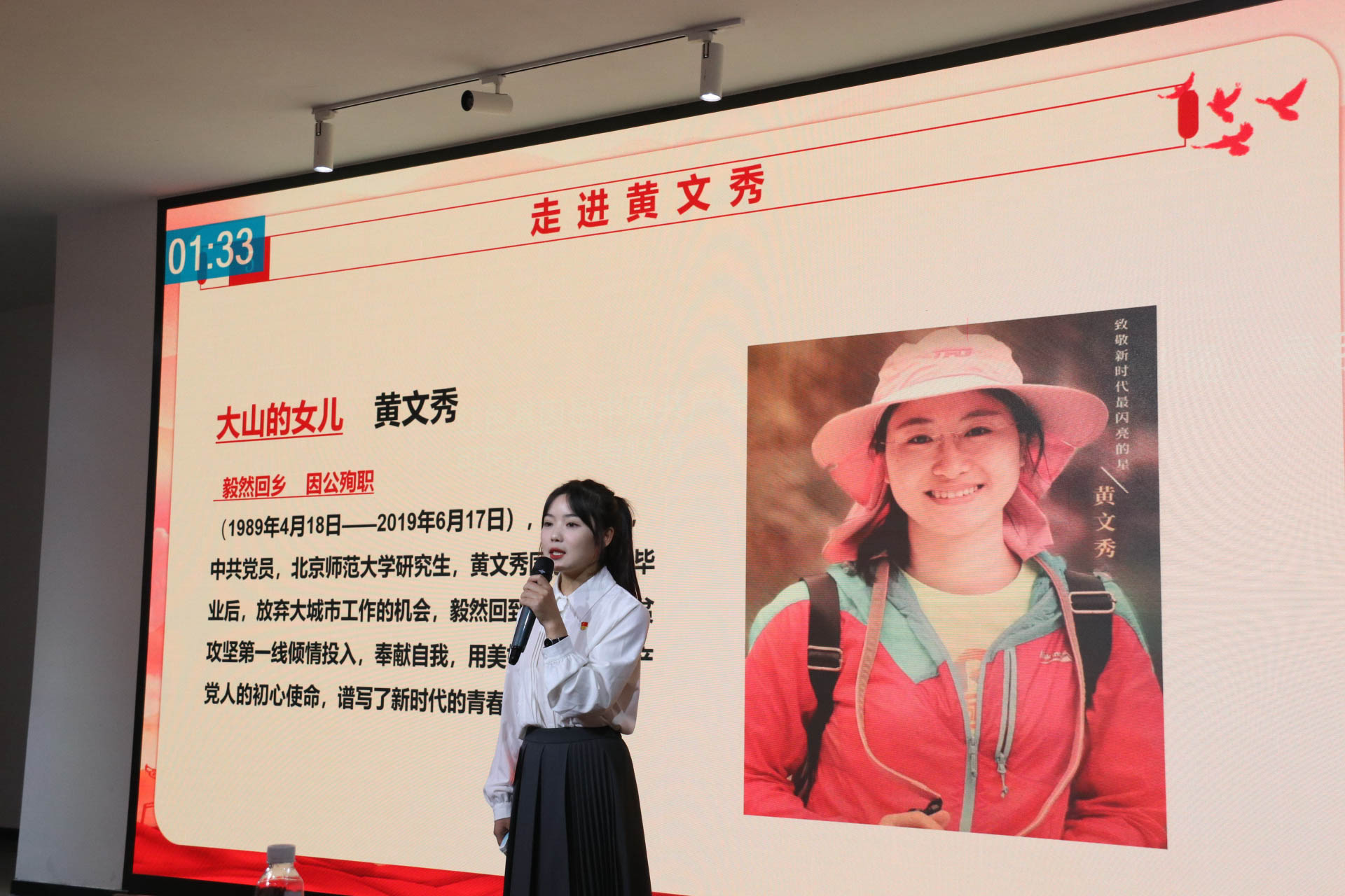 接下来,十三位参赛选手进行了一场别开生面的微党课宣讲。其中,有以《沂蒙母亲》、《赓续红色血脉,书写青春华章》、《以青春之名,担时代之责》为主题。有以《以“路”之名绘时代,八八战略梦归乡》、《做一朵奋斗的青春浪花,奔赴“八八战略”的海洋》、《回首留法岁月,青春正当时》、《时代赋予青年责任,勇立潮头敢为人先》、《敢为人先,看“千年商港”续写创新史》、《潮涌新时代·自信向未来》、《我追随的光,是五角星的光》、《传承山水诗情,坚定文化自信》、《乘风破浪立潮头,扬帆启航正当时》、《“青”听,他们的声音》为主题,参赛选手利用多媒体设备,图文并茂、形象生动地讲述时代故事,引起观众的强烈共鸣。