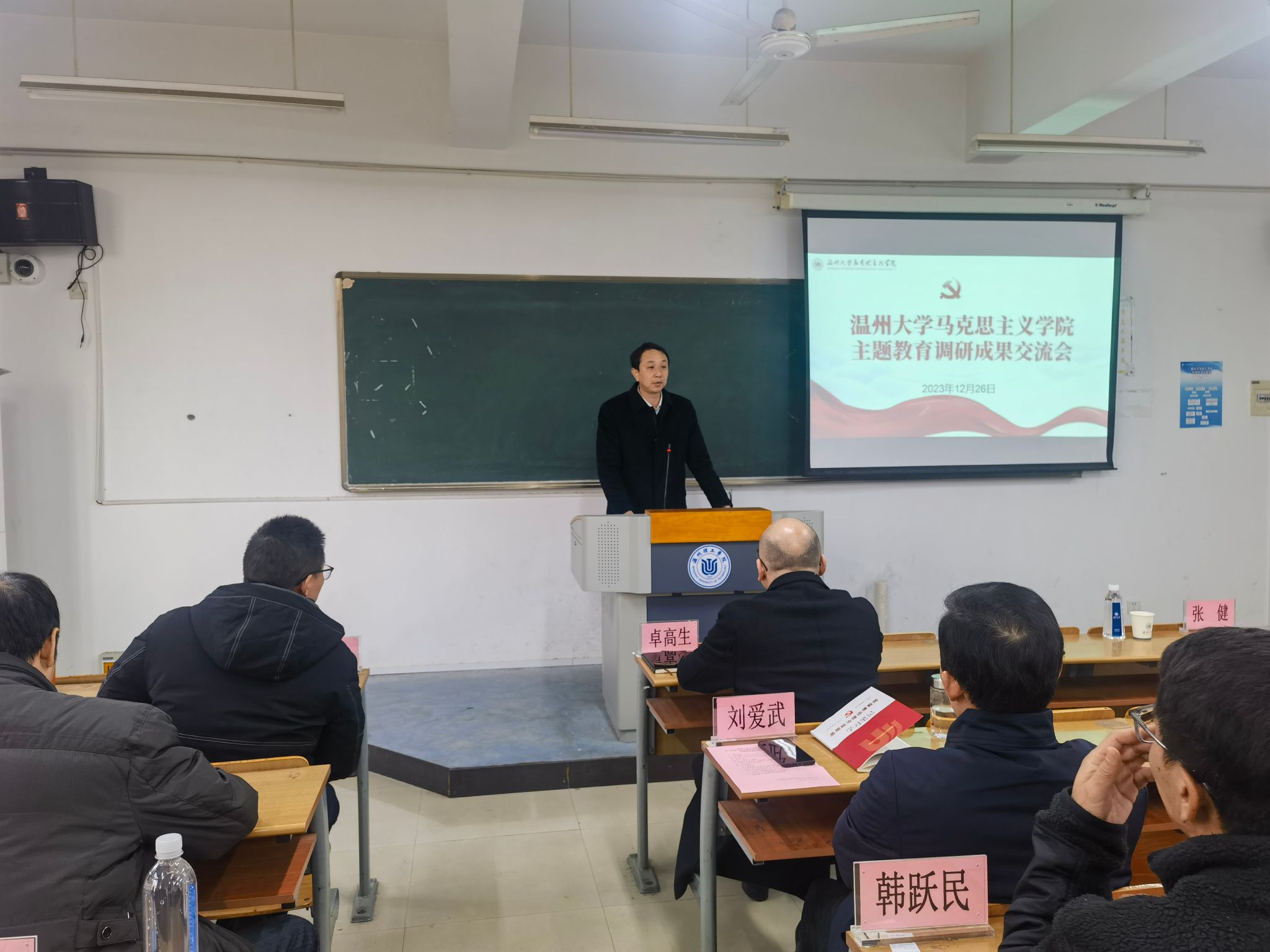 2023年12月26日,十大体育博彩排行榜 在北校区4号楼310教室召开了学习贯彻习近平新时代中国特色社会主义思想主题教育调研成果交流会。校党委书记张健莅临现场指导,校主题教育督导组张胜帮、林丽丽老师列席会议,十大体育博彩排行榜 班子全体成员、部分教师代表参加会议。会议由十大体育博彩排行榜 党委书记王柏民主持。