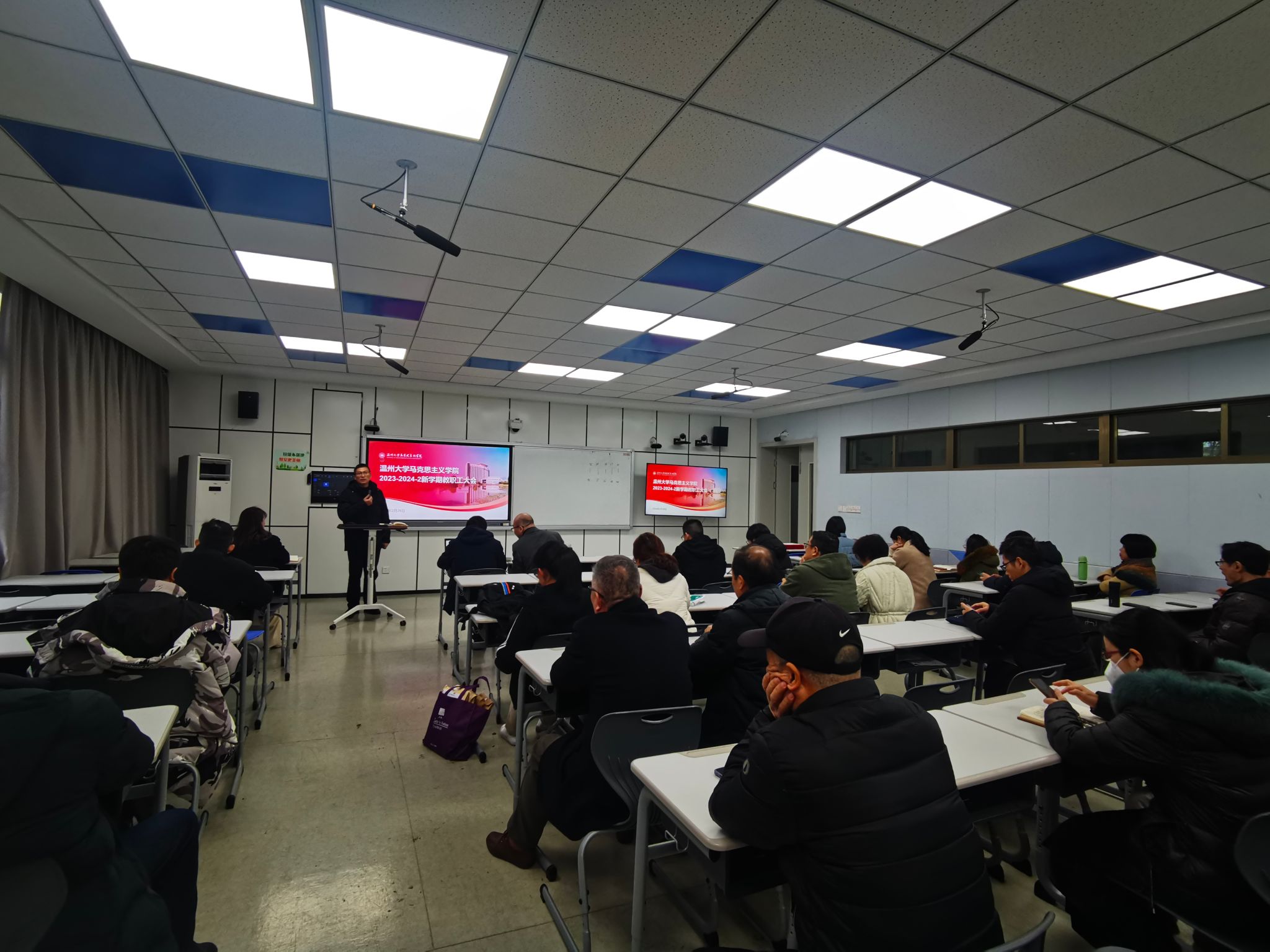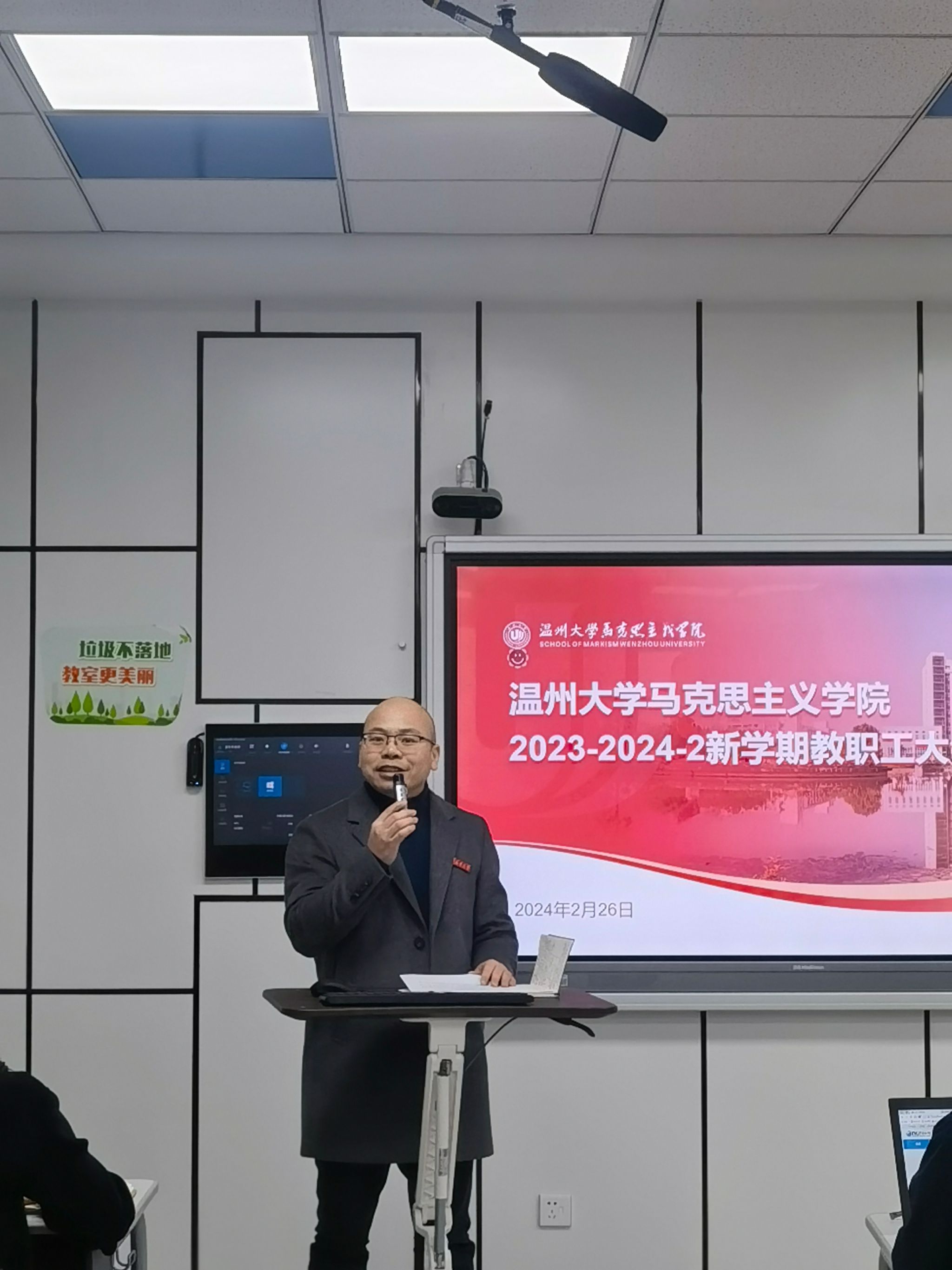 2024年2月26日,十大体育博彩排行榜 全体教职工大会在北校区4-204教室召开。本次大会旨在表彰先进,总结过去一年的成绩,并对新学期的工作进行全面部署。会议由王柏民书记主持,全体教职工参加。