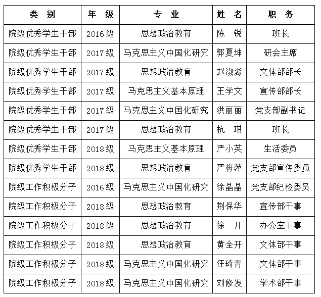十大体育博彩排行榜 2019年院级优秀学生干部和工作积极分子推荐名单公示