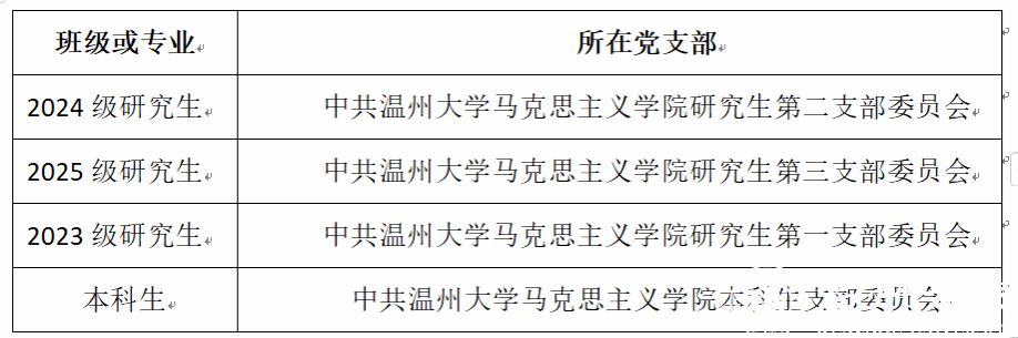 2.各专业对应党支部名称: