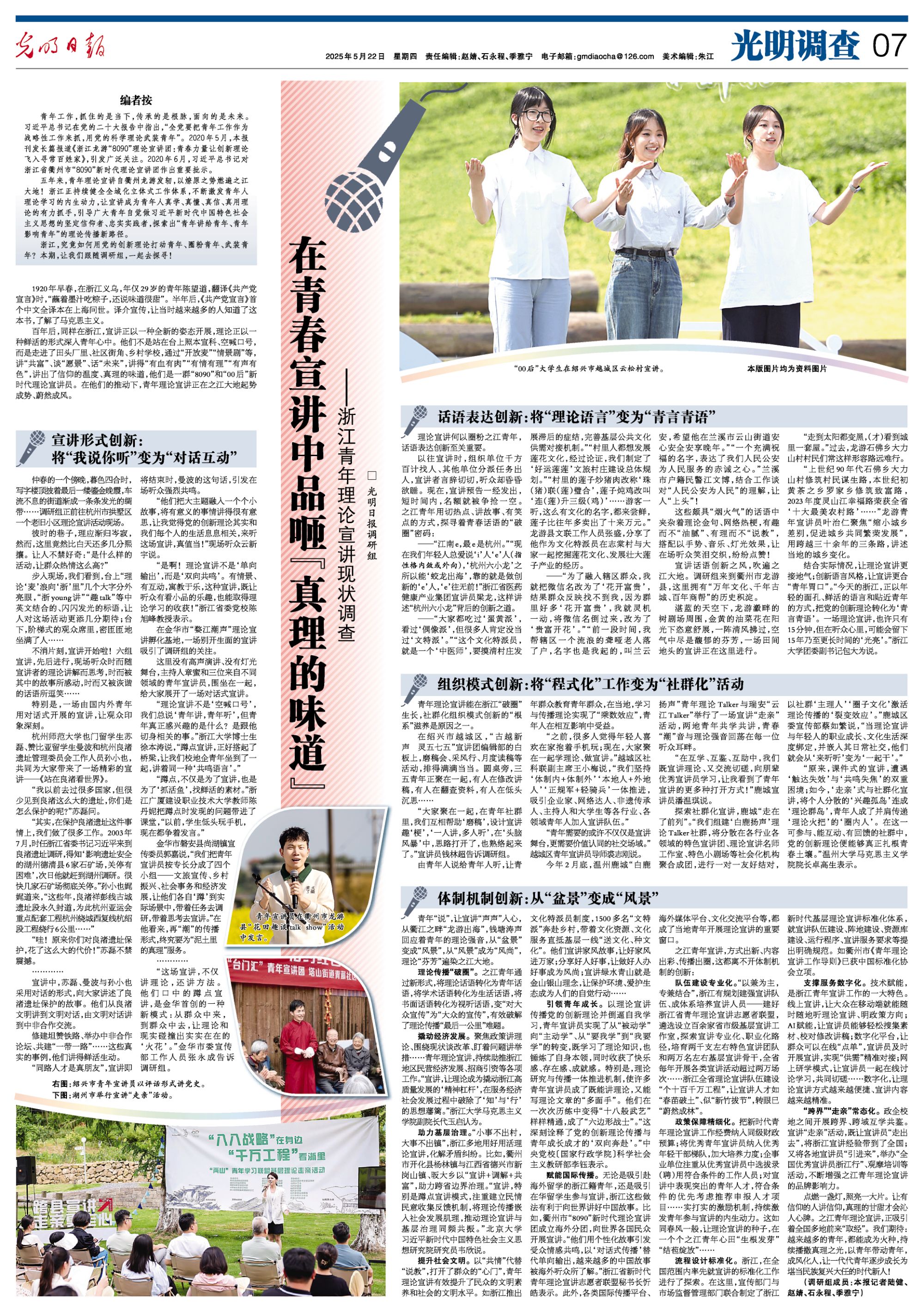 光明日报:在青春宣讲中品咂“真理的味道” ——浙江青年理论宣讲现状调查