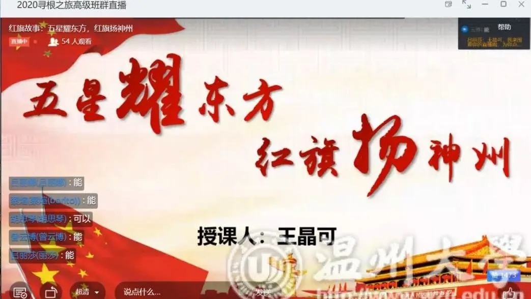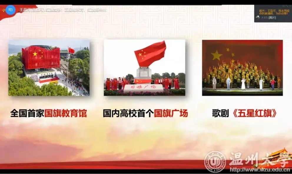 为了引导华侨子女树立爱国主义情怀,围绕学校“国旗文化”品牌打造,十大体育博彩排行榜 成立国旗志愿服务宣讲团,主要负责此次云端夏令营“红旗故事”特色主题课程授课。通过对五星红旗自诞生至今的风雨历程、曾联松校友设计国旗的小故事、五星红旗的丰富内涵 、《中华人民共和国国旗法》等内容的讲述,让华侨子女学习五星红旗的相关知识,树立尊重国旗、爱护国旗的意识,培养对五星红旗的认同感、敬畏感与自豪感,从而激发华侨子女浓烈的爱国热情。
