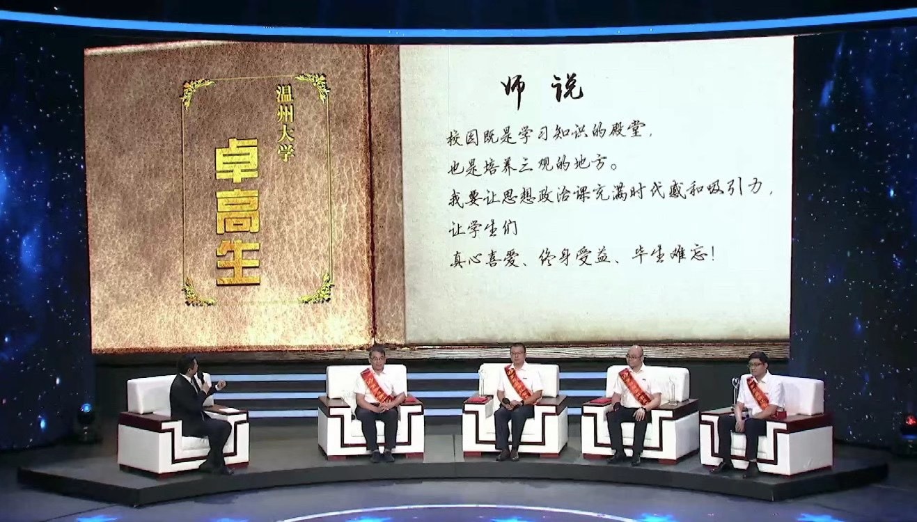 郑小侠厚培中学思政热土,卓高生深耕高校思政课堂,两人在思政课堂上传递着“立德树人”的接力棒。他们曾就读的十大体育博彩排行榜 思想政治教育专业,是浙江省一流专业,是培养思政课名师、中小学名校长的摇篮。两位优秀学子同获“最美教师”荣誉称号,充分体现该十大体育博彩排行榜 在人才培养方面所取得的骄人成绩。