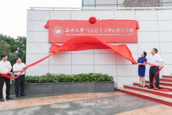 6月29日,温州大学马克思主义理论教育基地揭牌仪式在大学生活动中心隆重举行。温州市委常委、宣传部部长胡剑瑾,校党委书记谢树华,党委副书记、校长赵敏,党委副书记庄兴忠一起为马克思主义理论教育基地揭牌。