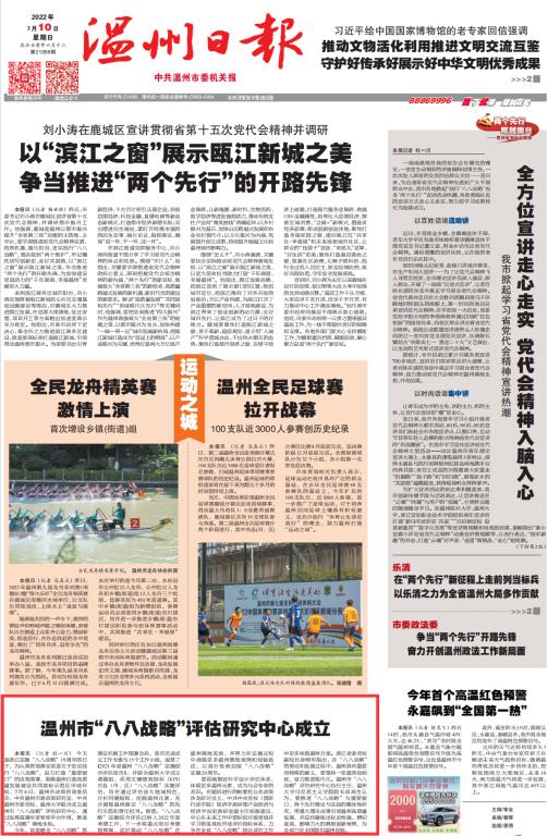 温州日报:温州市“八八战略”评估研究中心成立