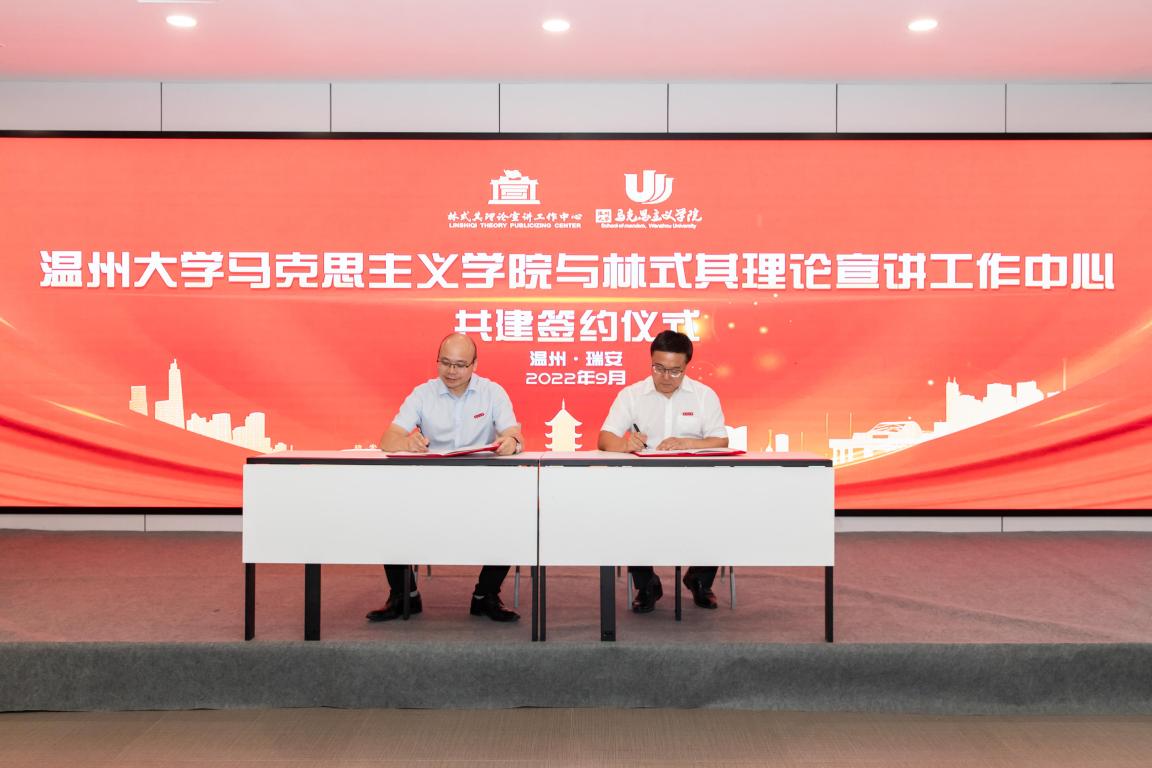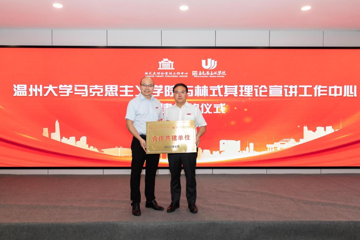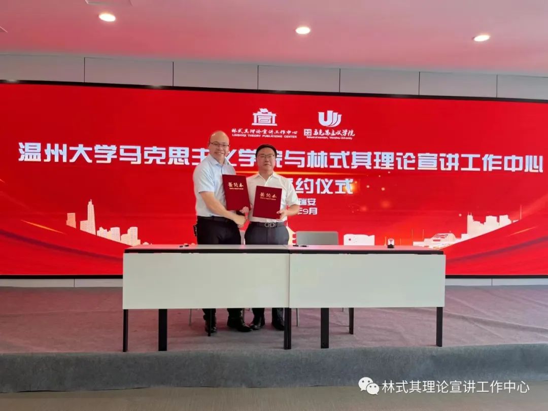 为充分发挥学科优势,积极服务地方,进一步推动党的基本理论、基本路线、基本方略“飞入寻常百姓家”,十大体育博彩排行榜 与林式其理论宣讲工作中心开展校地共建活动。2022年9月3日下午,结对共建仪式在瑞安市新时代文明实践中心隆重举行。十大体育博彩排行榜 院长卓高生、副院长吴志敏、林式其理论宣讲工作中心中心创始人林式其、中心成员及部分热心宣讲的市民参加活动。