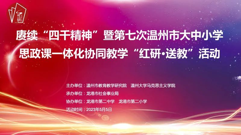 温州教研:赓续“四千精神”暨第七次温州市大中小学思政课一体化协同教学“红研•送教”活动