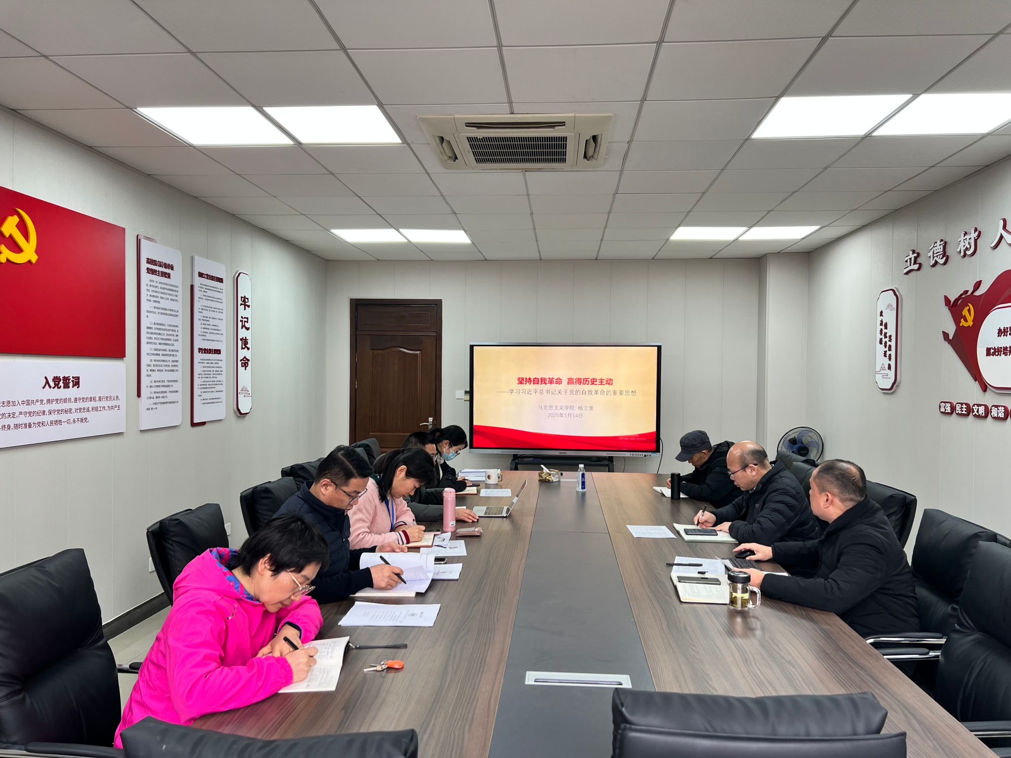 杨立淮书记领学习近平总书记关于党的自我革命的重要思想,学习贯彻习近平总书记在二十届中央纪委四次全会重要讲话精神,学习《中国共产党纪律处分条例》。卓高生院长进行交流发言。